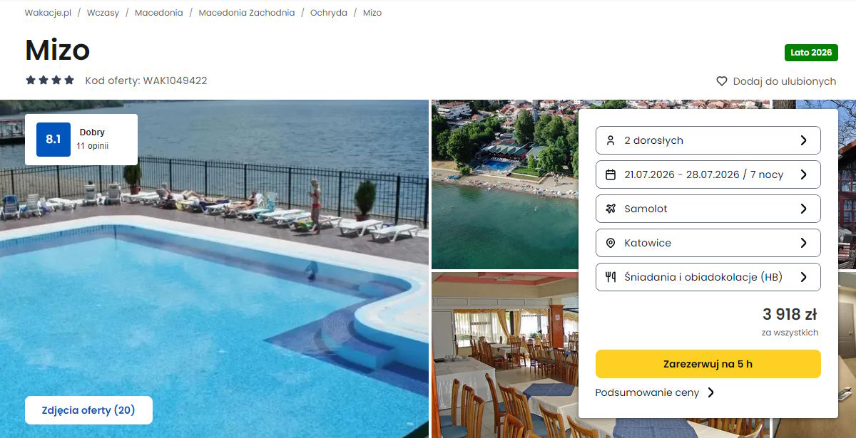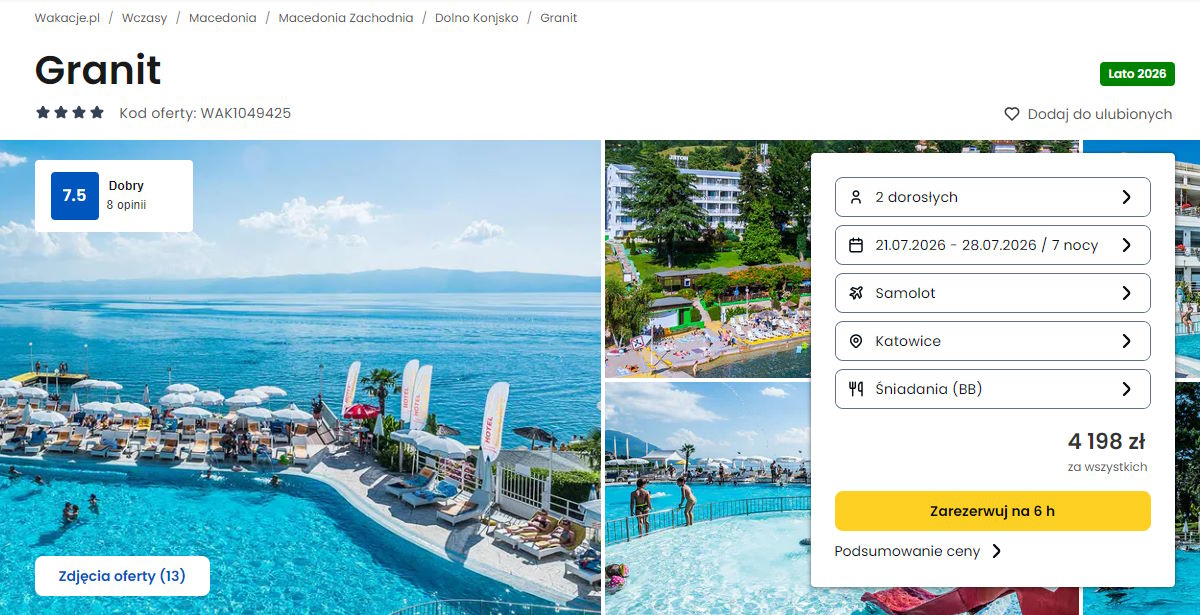Współpracujemy z serwisem wakacje.pl i dzięki temu mogliśmy zaprezentować w/w ofertę. Treści pochodzą z serwisu wakacje.pl. Stanowią własność prawnie chronioną należącą do Wakacje.pl S.A. i/lub jej partnerów