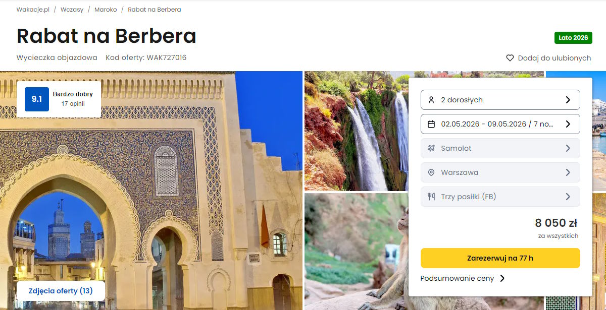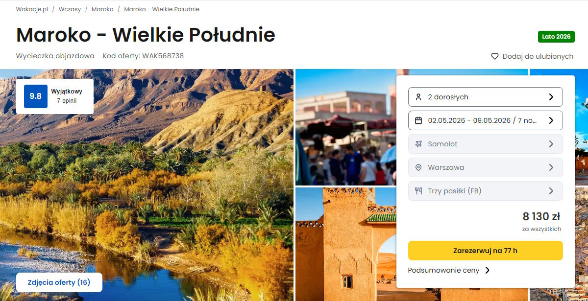 Dzisiaj mam dla Was kilka ofert podróży zorganizowanej (wycieczek). Kierunkiem docelowym jest Maroko – z Polski. Pamiętajcie, że to tylko część propozycji, wszystkie aktualne oferty znajdziecie TUTAJ