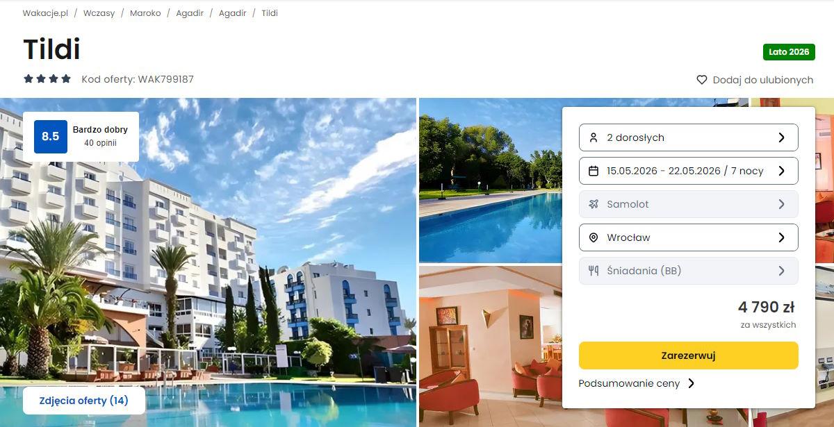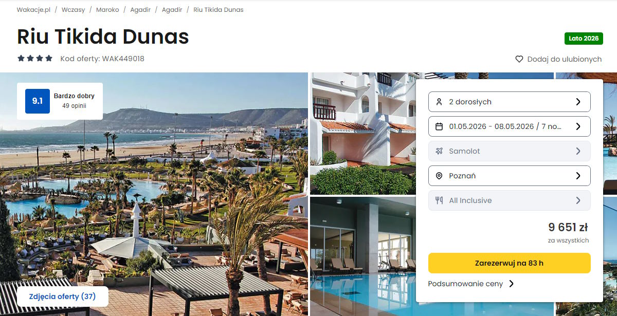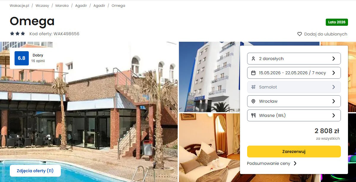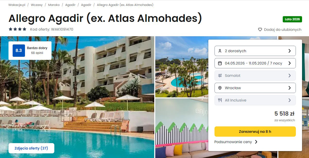 Współpracujemy z serwisem wakacje.pl i dzięki temu mogliśmy zaprezentować w/w ofertę. Treści pochodzą z serwisu wakacje.pl. Stanowią własność prawnie chronioną należącą do Wakacje.pl S.A. i/lub jej partnerów