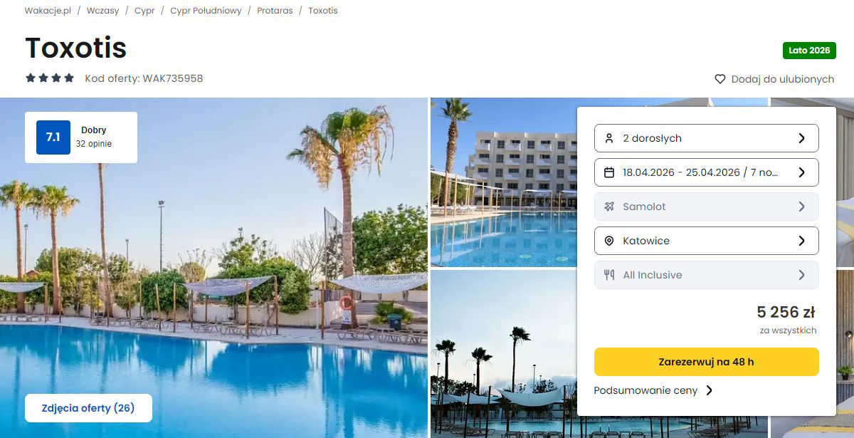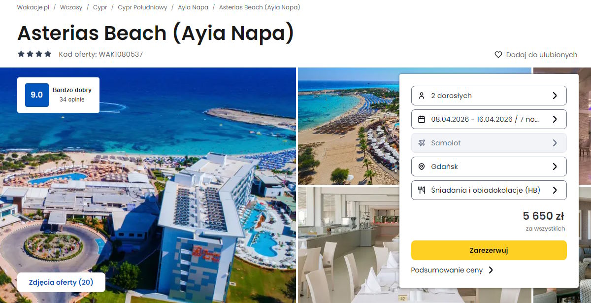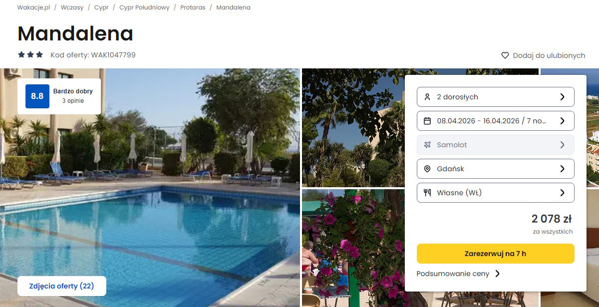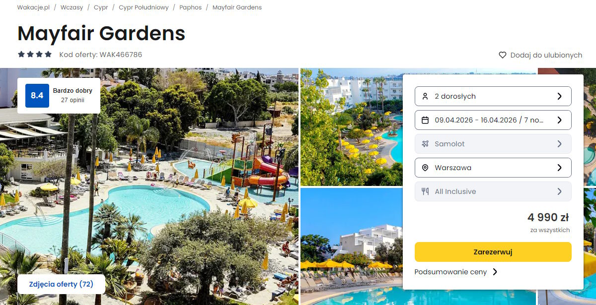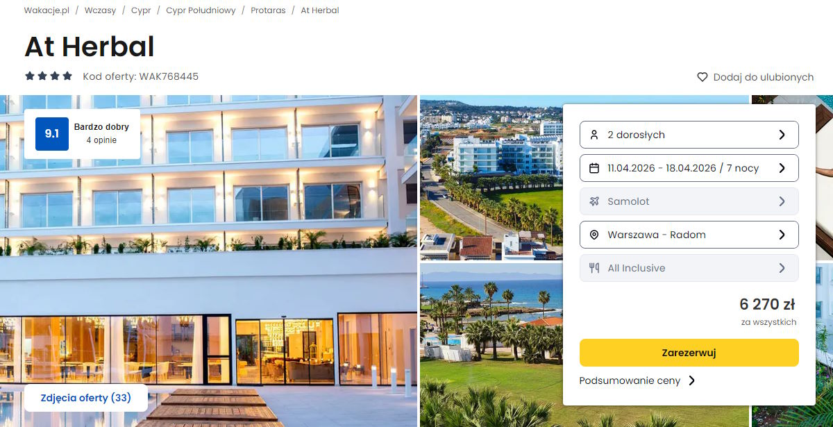 Współpracujemy z serwisem wakacje.pl i dzięki temu mogliśmy zaprezentować w/w ofertę. Treści pochodzą z serwisu wakacje.pl. Stanowią własność prawnie chronioną należącą do Wakacje.pl S.A. i/lub jej partnerów
