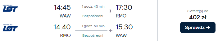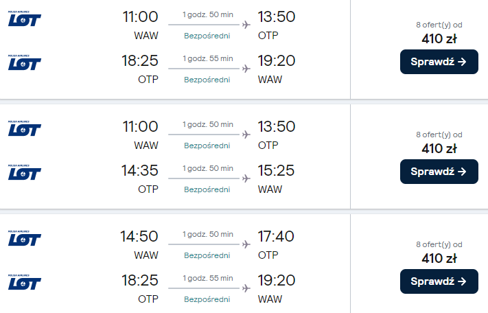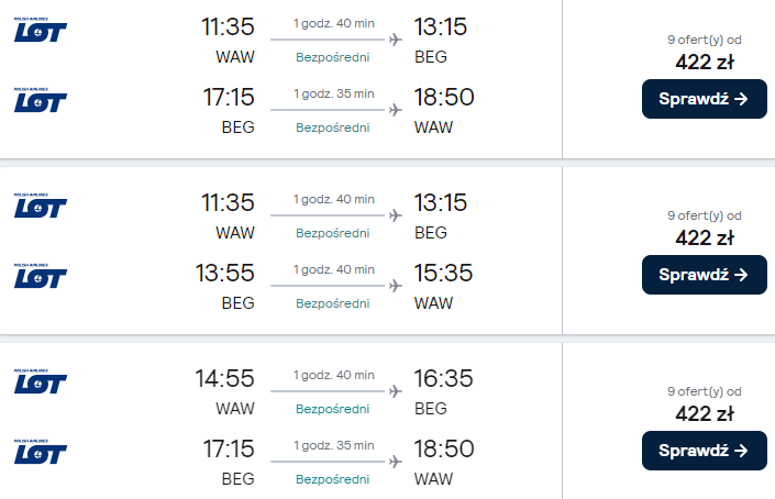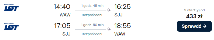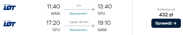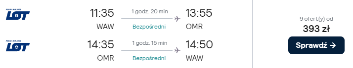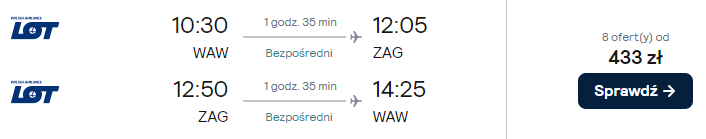 Dostępne są też loty z innych polskich lotnisk (z przesiadką w Warszawie) w niewiele wyższej (bądź nawet tej samej!) cenie – warto skorzystać!