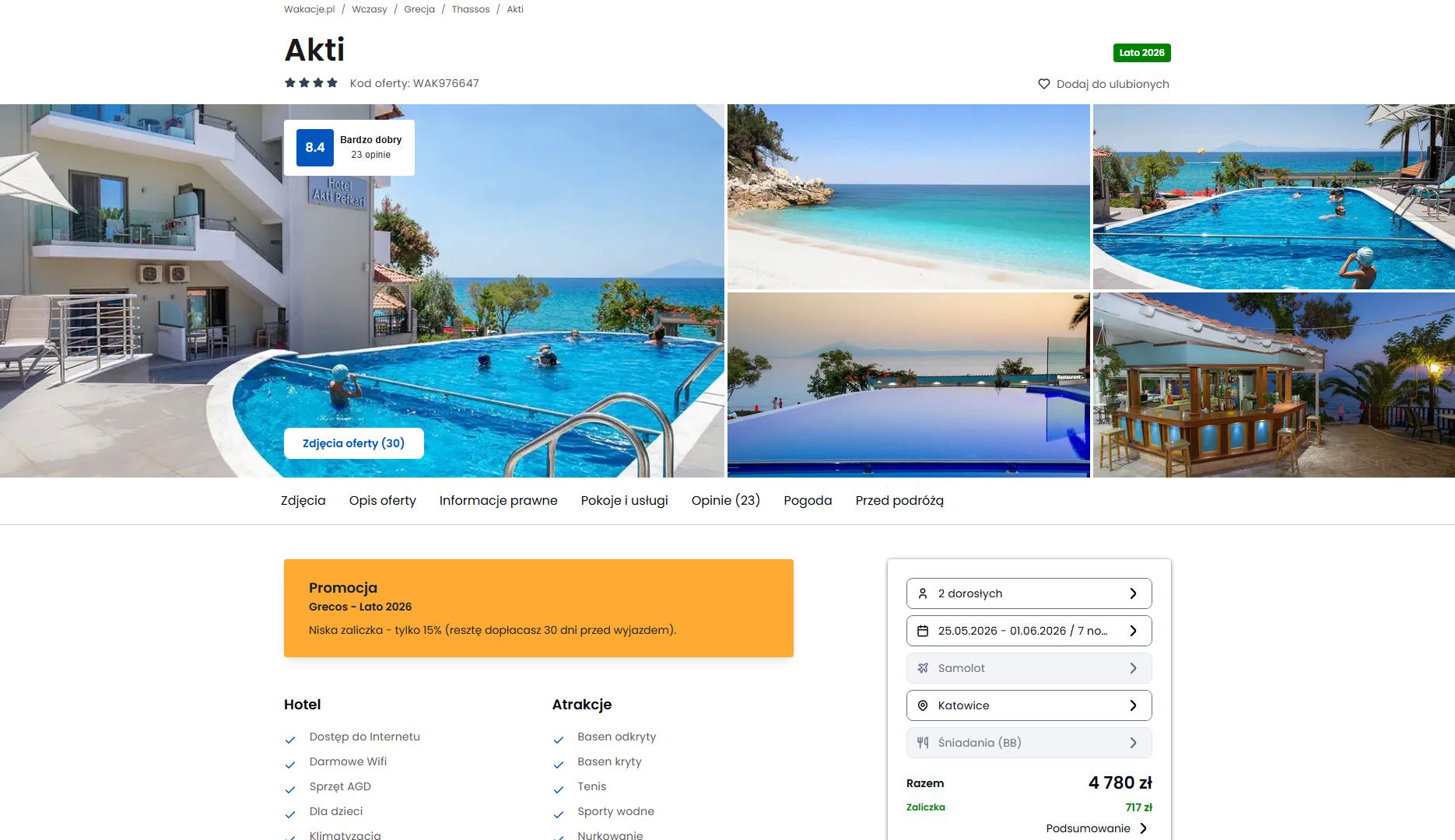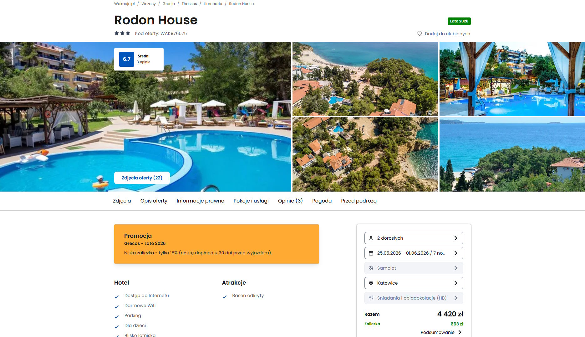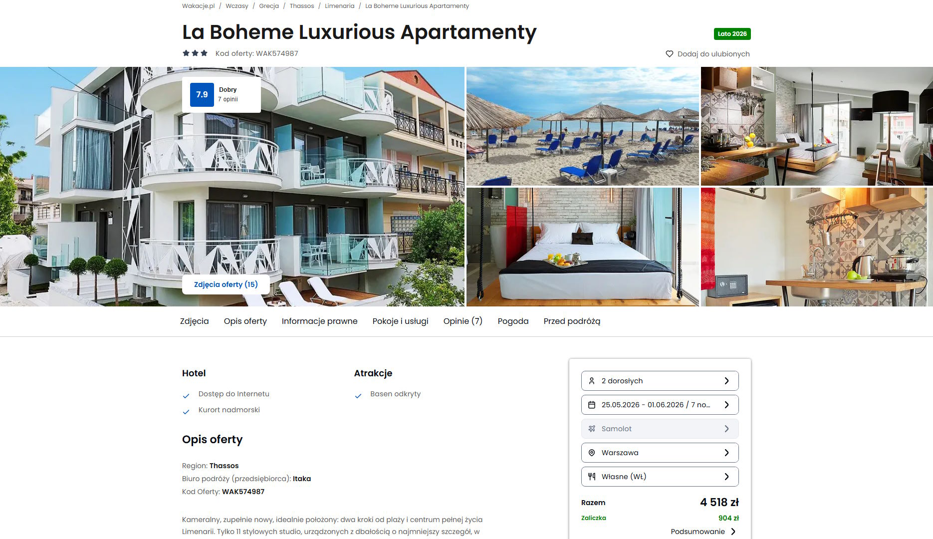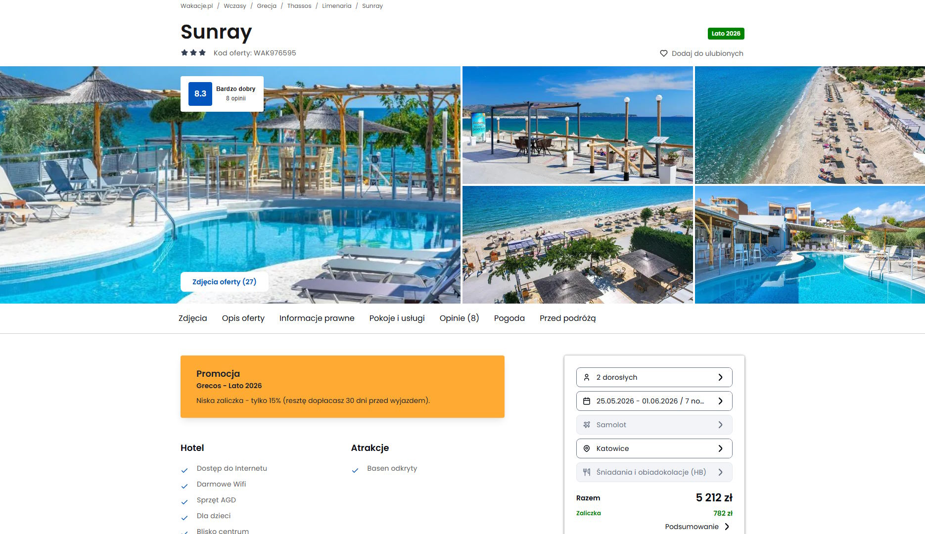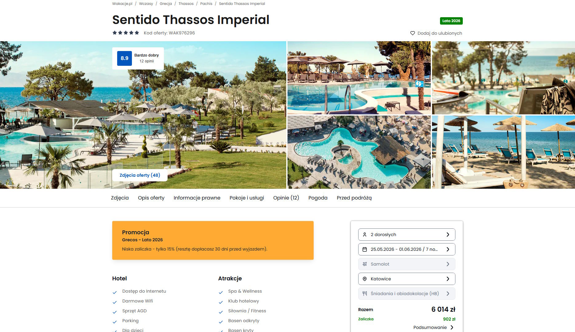 Współpracujemy z serwisem wakacje.pl i dzięki temu mogliśmy zaprezentować w/w ofertę. Treści pochodzą z serwisu wakacje.pl. Stanowią własność prawnie chronioną należącą do Wakacje.pl S.A. i/lub jej partnerów