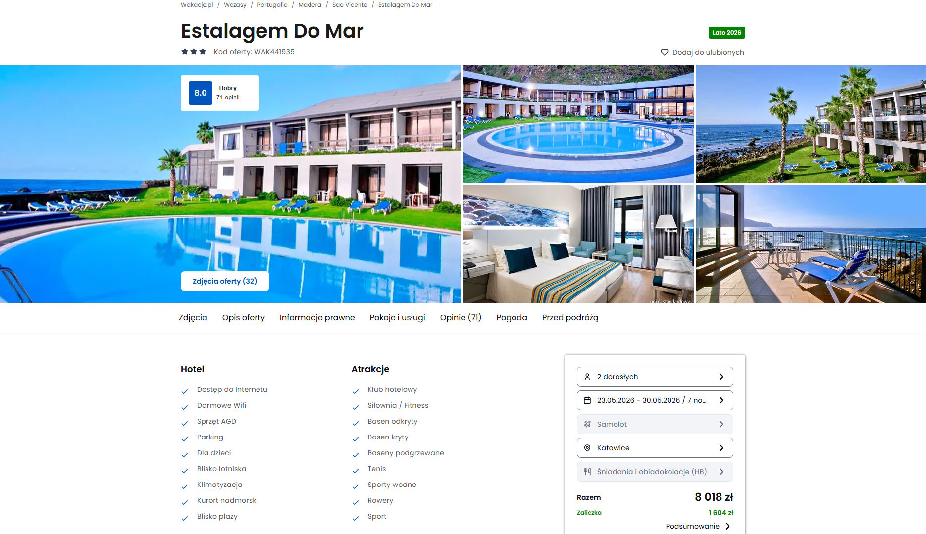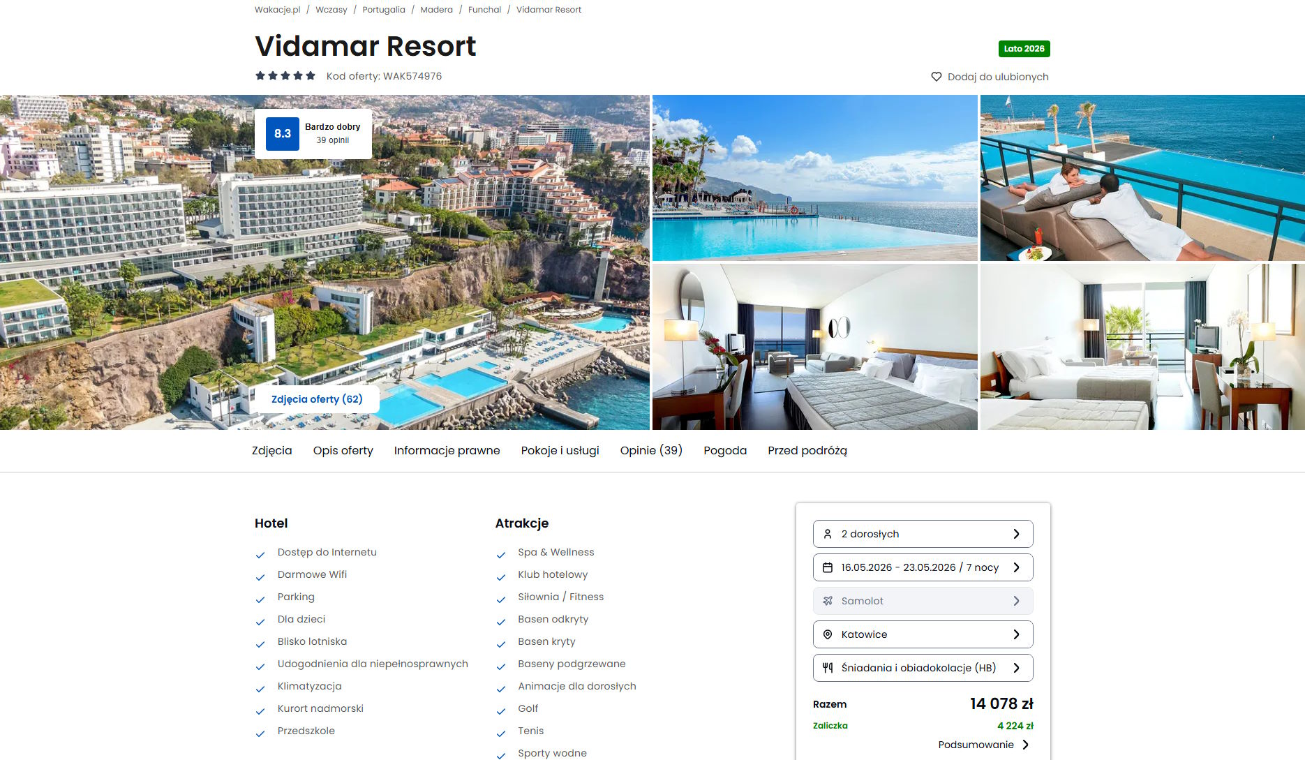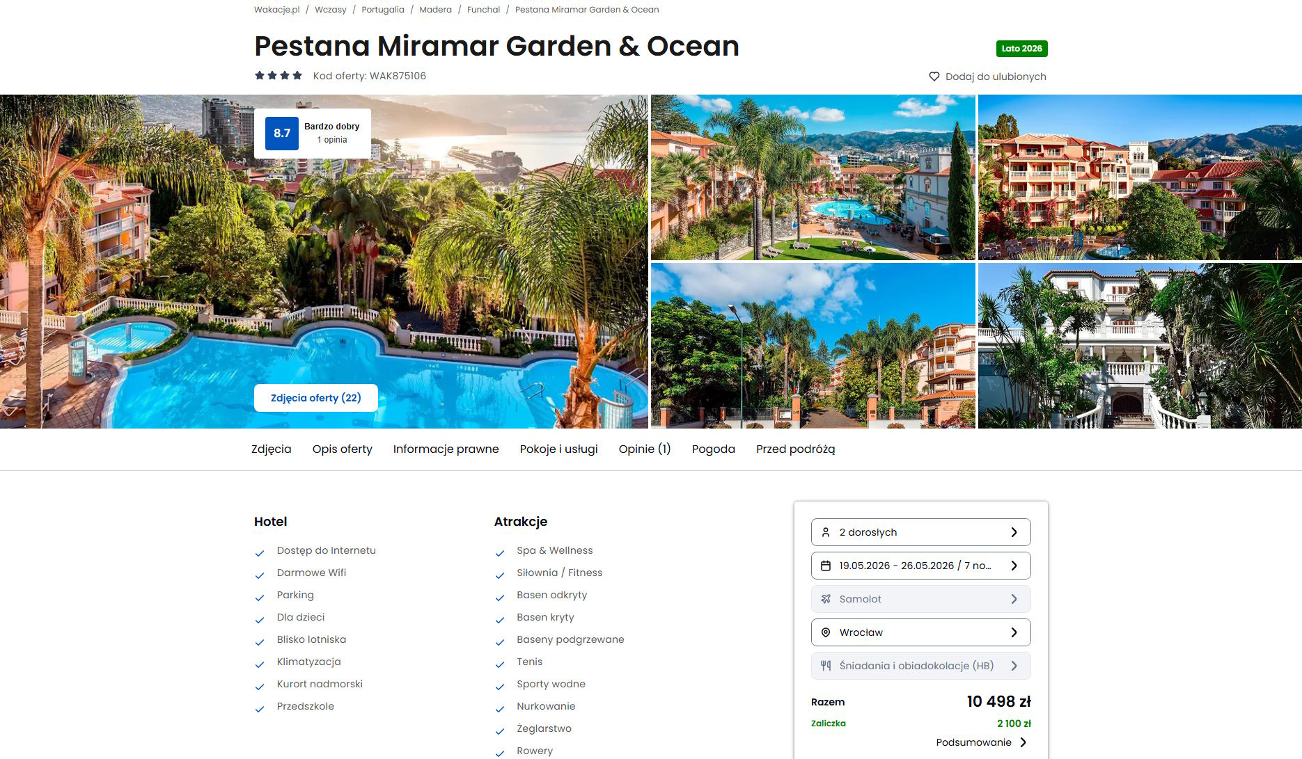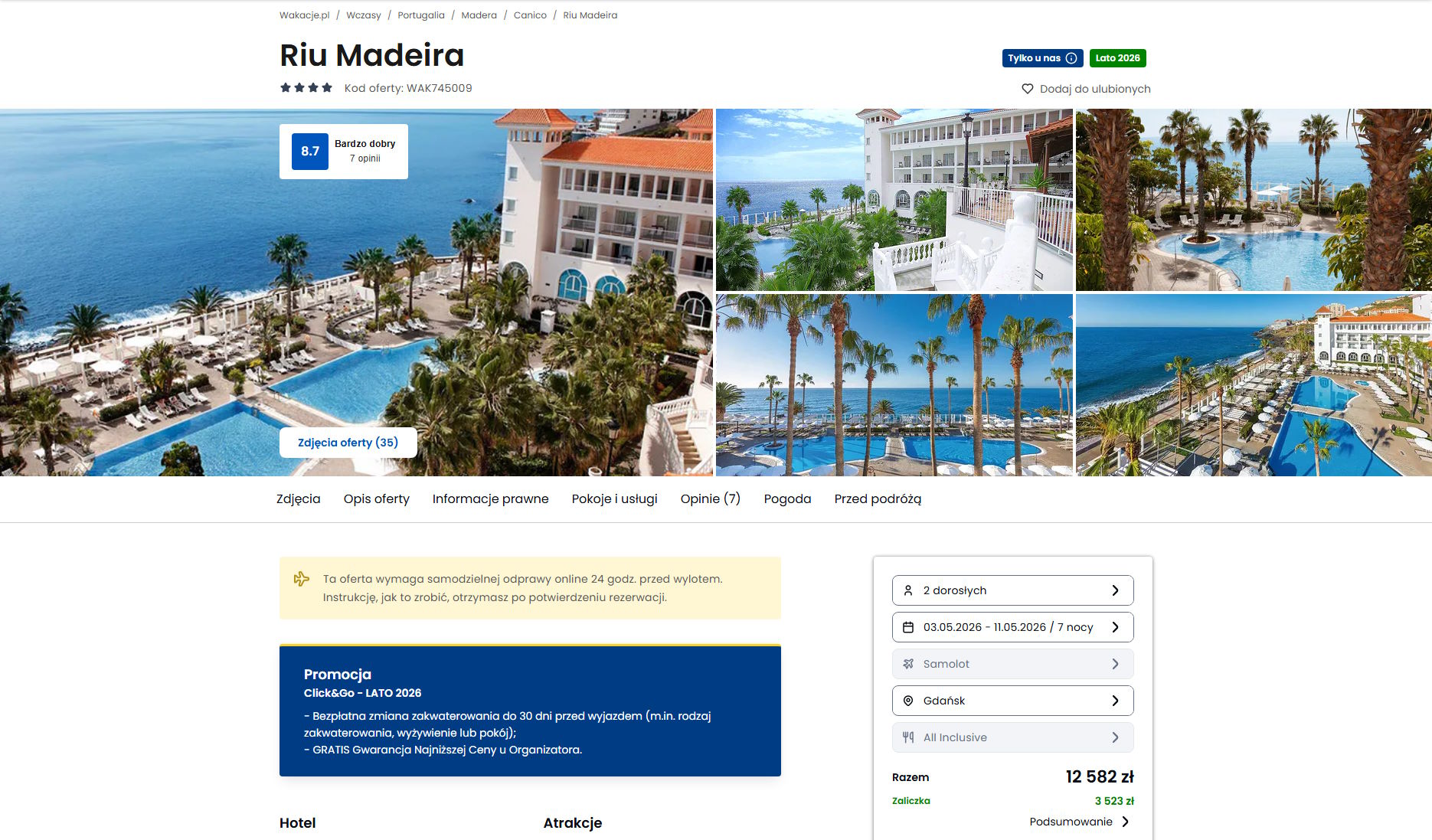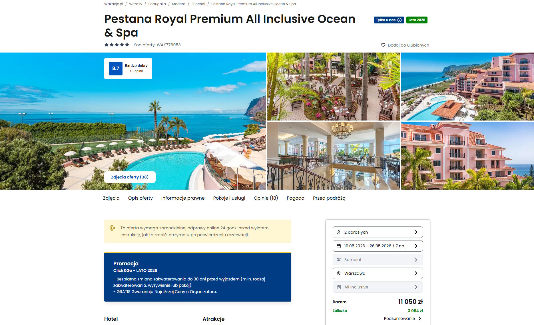 Współpracujemy z serwisem wakacje.pl i dzięki temu mogliśmy zaprezentować w/w ofertę. Treści pochodzą z serwisu wakacje.pl. Stanowią własność prawnie chronioną należącą do Wakacje.pl S.A. i/lub jej partnerów