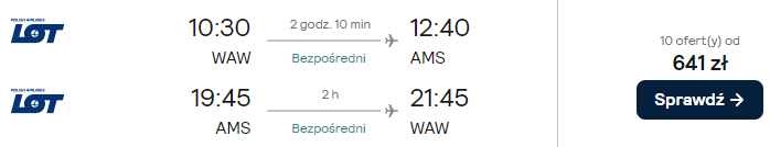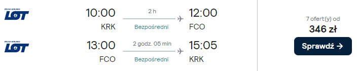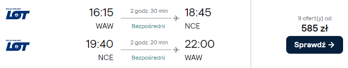 Dostępne są też loty z innych polskich lotnisk (z przesiadką w Warszawie) w niewiele wyższej (bądź nawet tej samej!) cenie – warto skorzystać!