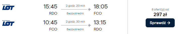 od 01.03 do 31.08.2026: loty do Rzymu, Mediolanu, Wenecji, Amsterdamu,