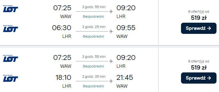 od 01.03 do 31.05.2026: loty do Londynu i Brukseli.