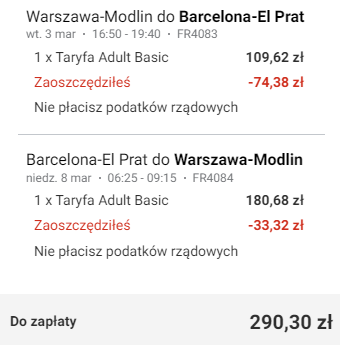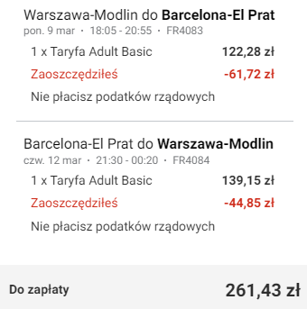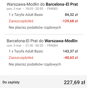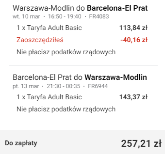 Warszawa Modlin – Barcelona (BCN) od ~228 PLN* RT: