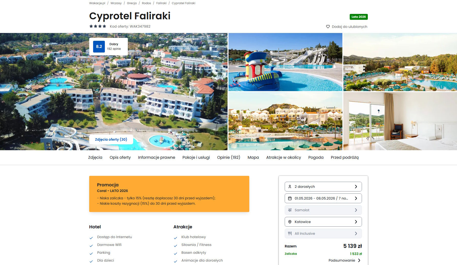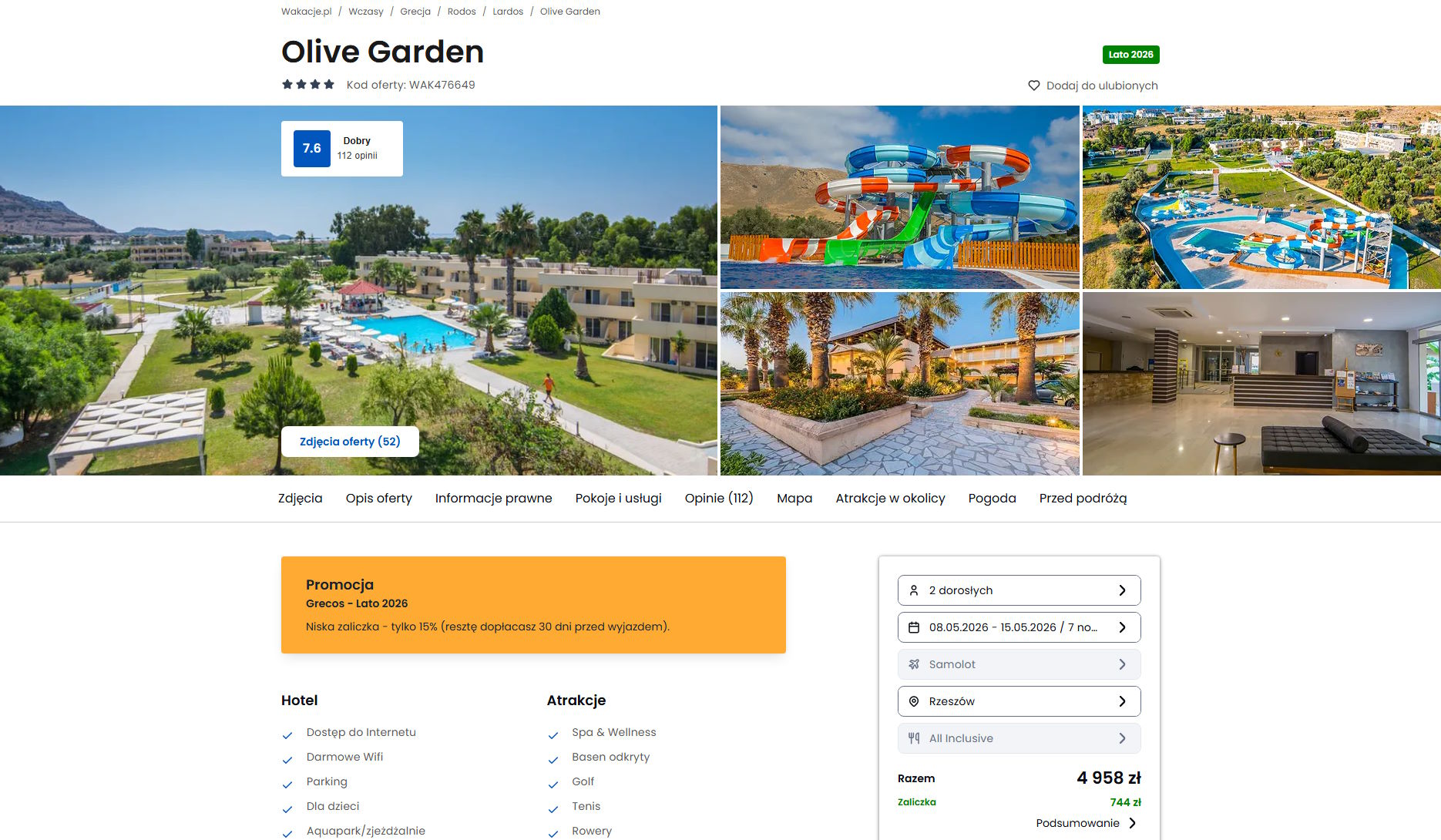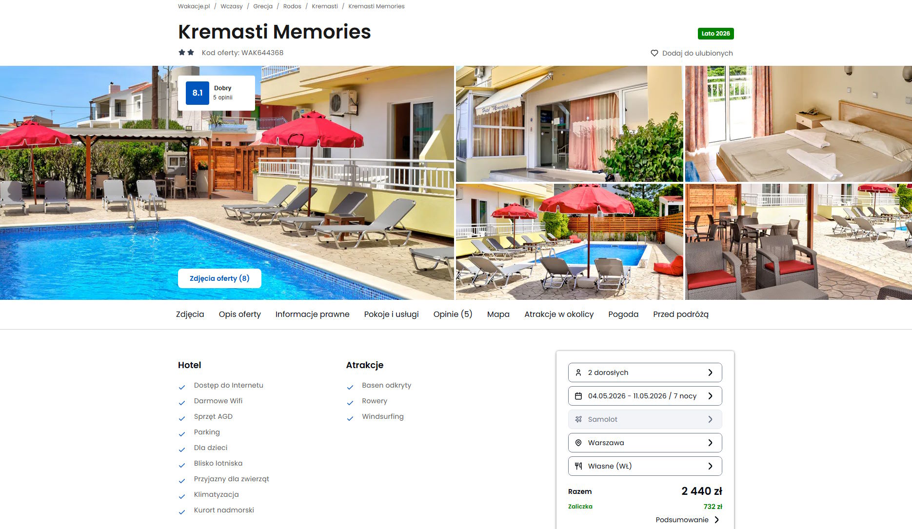 Współpracujemy z serwisem wakacje.pl i dzięki temu mogliśmy zaprezentować w/w ofertę. Treści pochodzą z serwisu wakacje.pl. Stanowią własność prawnie chronioną należącą do Wakacje.pl S.A. i/lub jej partnerów