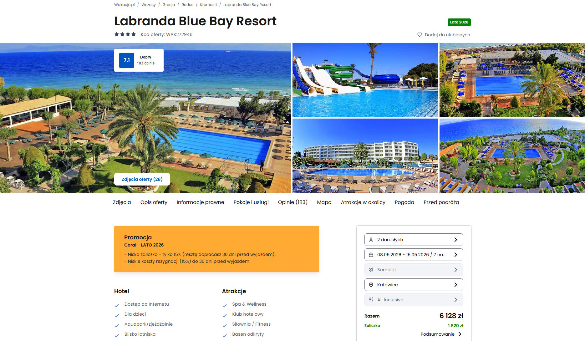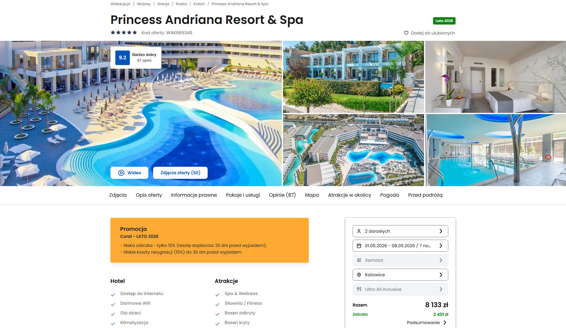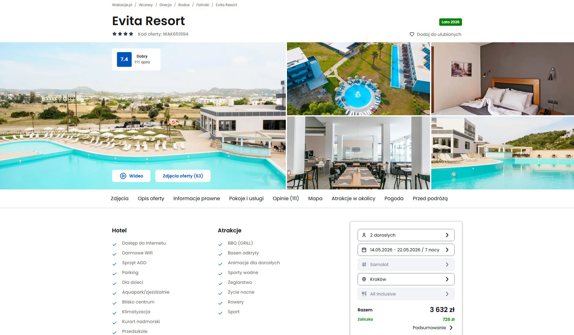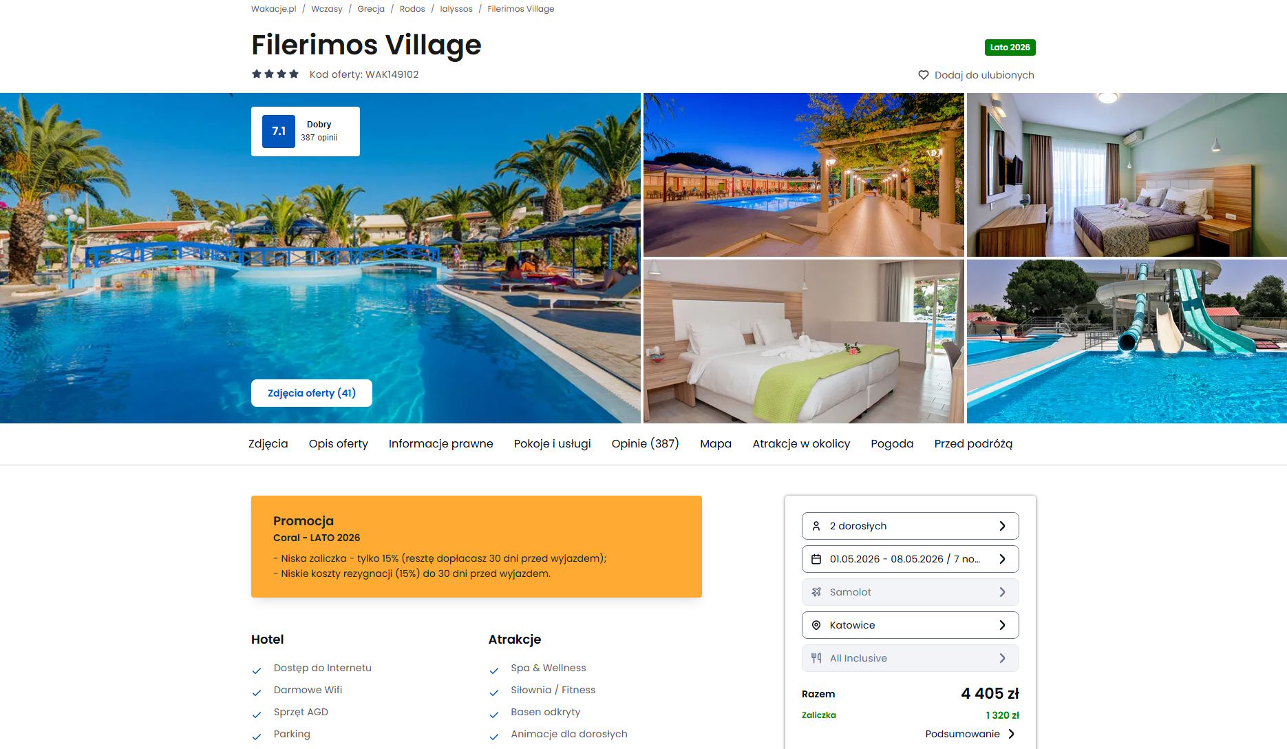 Współpracujemy z serwisem wakacje.pl i dzięki temu mogliśmy zaprezentować w/w ofertę. Treści pochodzą z serwisu wakacje.pl. Stanowią własność prawnie chronioną należącą do Wakacje.pl S.A. i/lub jej partnerów