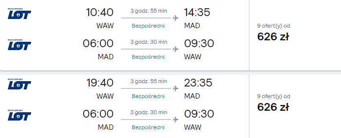 Dostępne są też loty z innych polskich lotnisk (z przesiadką w Warszawie) w niewiele wyższej (bądź nawet tej samej!) cenie – warto skorzystać!
