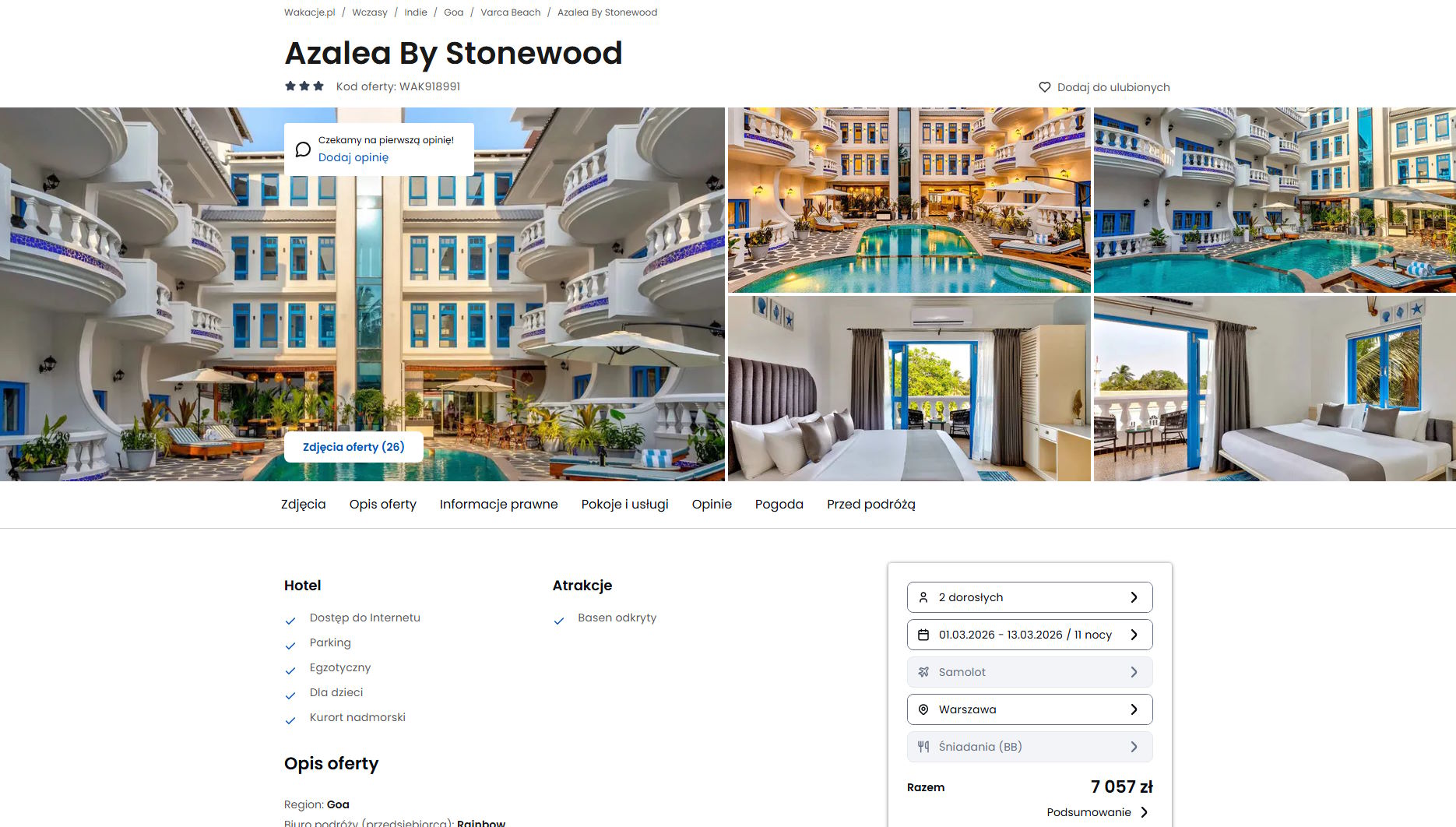 Współpracujemy z serwisem wakacje.pl i dzięki temu mogliśmy zaprezentować w/w ofertę. Treści pochodzą z serwisu wakacje.pl. Stanowią własność prawnie chronioną należącą do Wakacje.pl S.A. i/lub jej partnerów