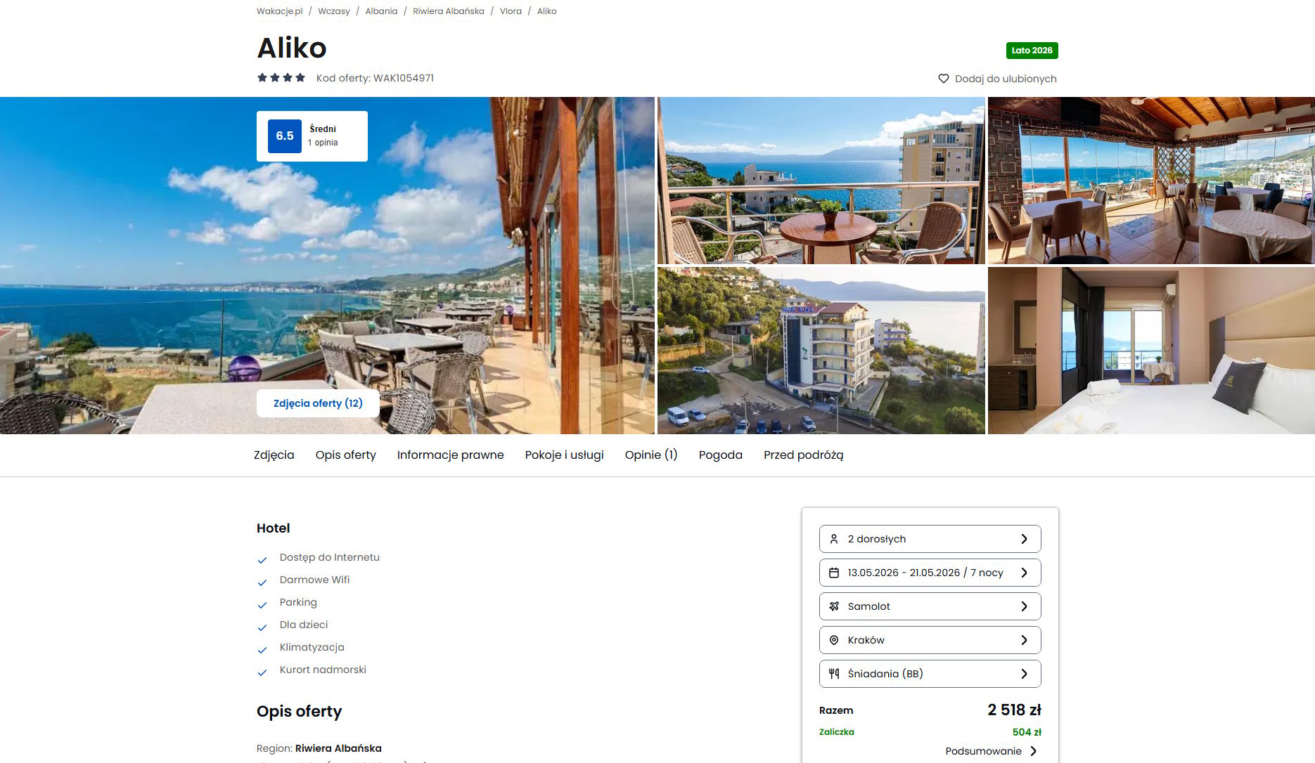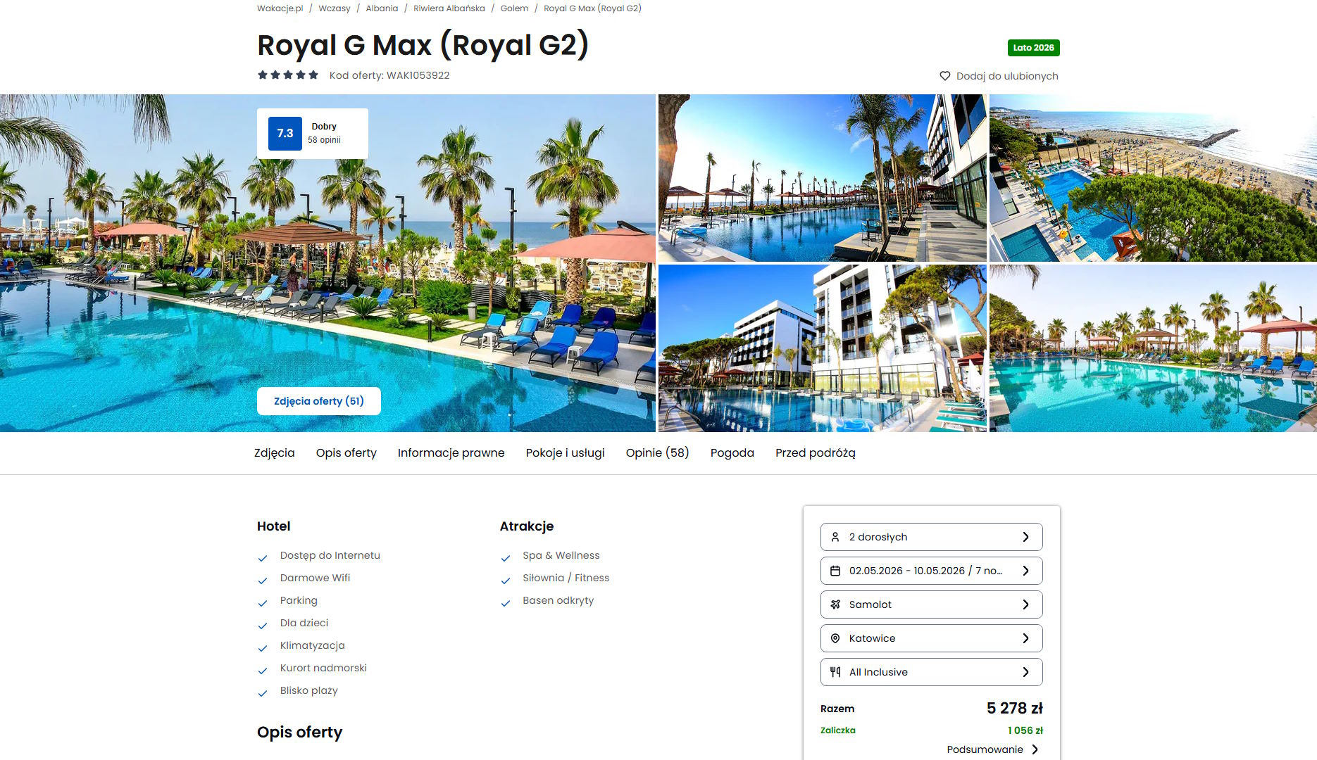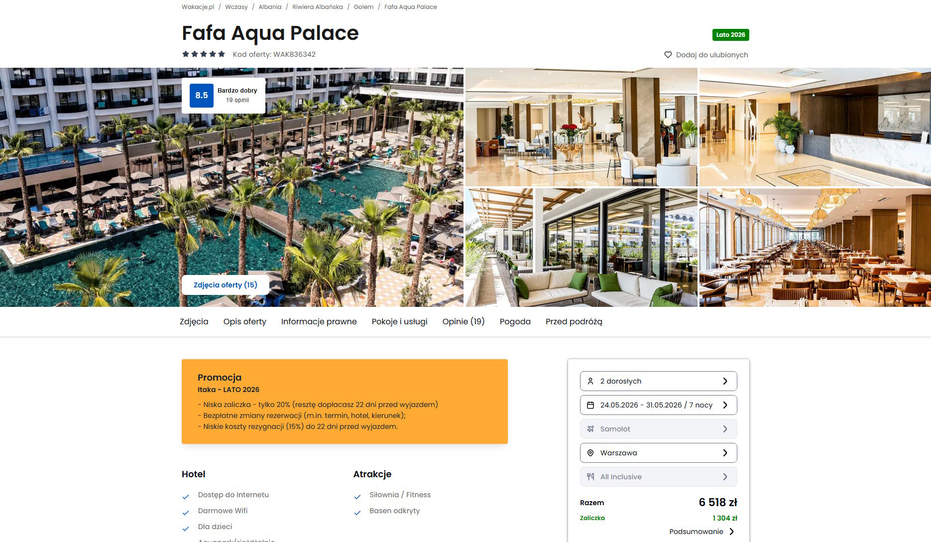 Współpracujemy z serwisem wakacje.pl i dzięki temu mogliśmy zaprezentować w/w ofertę. Treści pochodzą z serwisu wakacje.pl. Stanowią własność prawnie chronioną należącą do Wakacje.pl S.A. i/lub jej partnerów