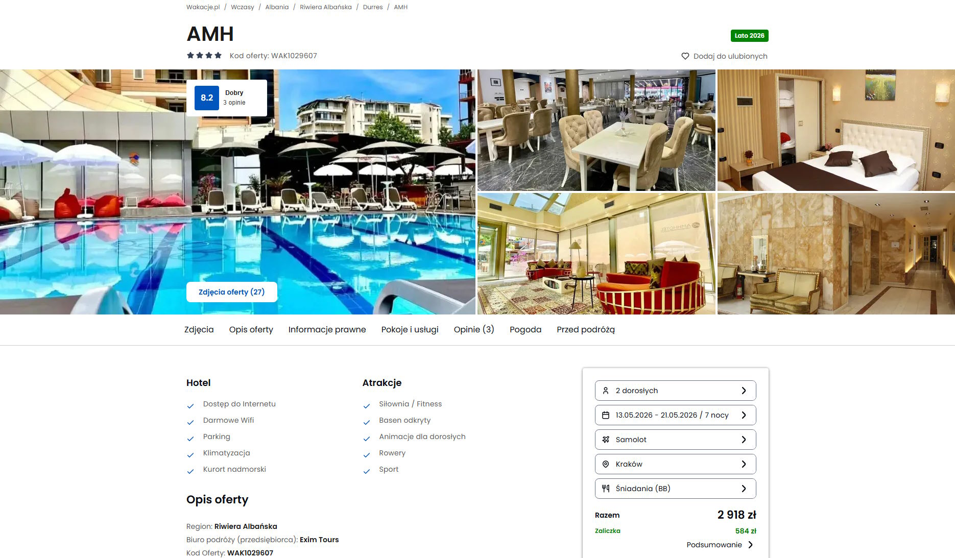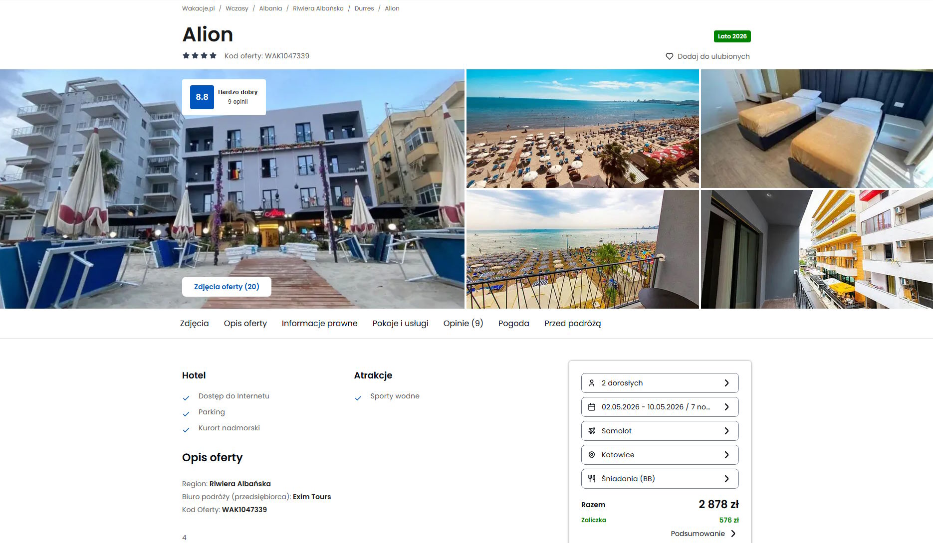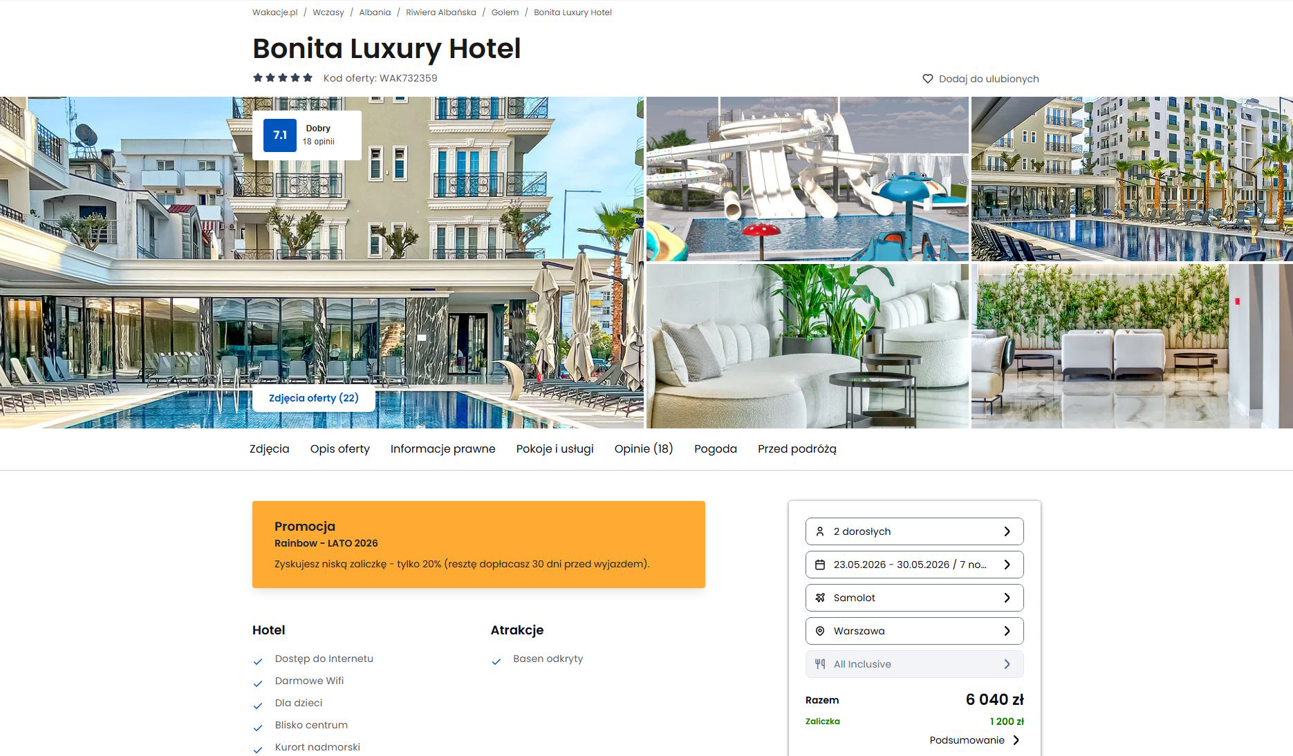 Współpracujemy z serwisem wakacje.pl i dzięki temu mogliśmy zaprezentować w/w ofertę. Treści pochodzą z serwisu wakacje.pl. Stanowią własność prawnie chronioną należącą do Wakacje.pl S.A. i/lub jej partnerów
