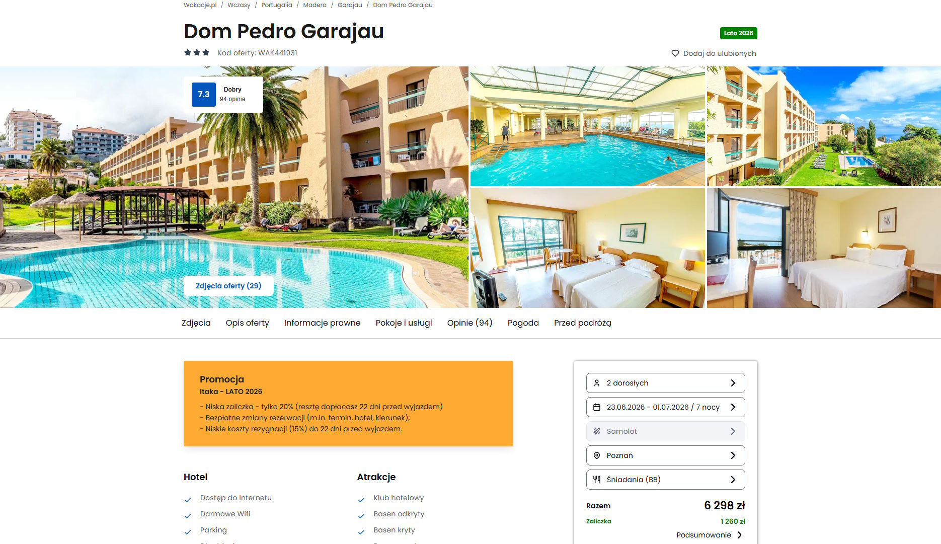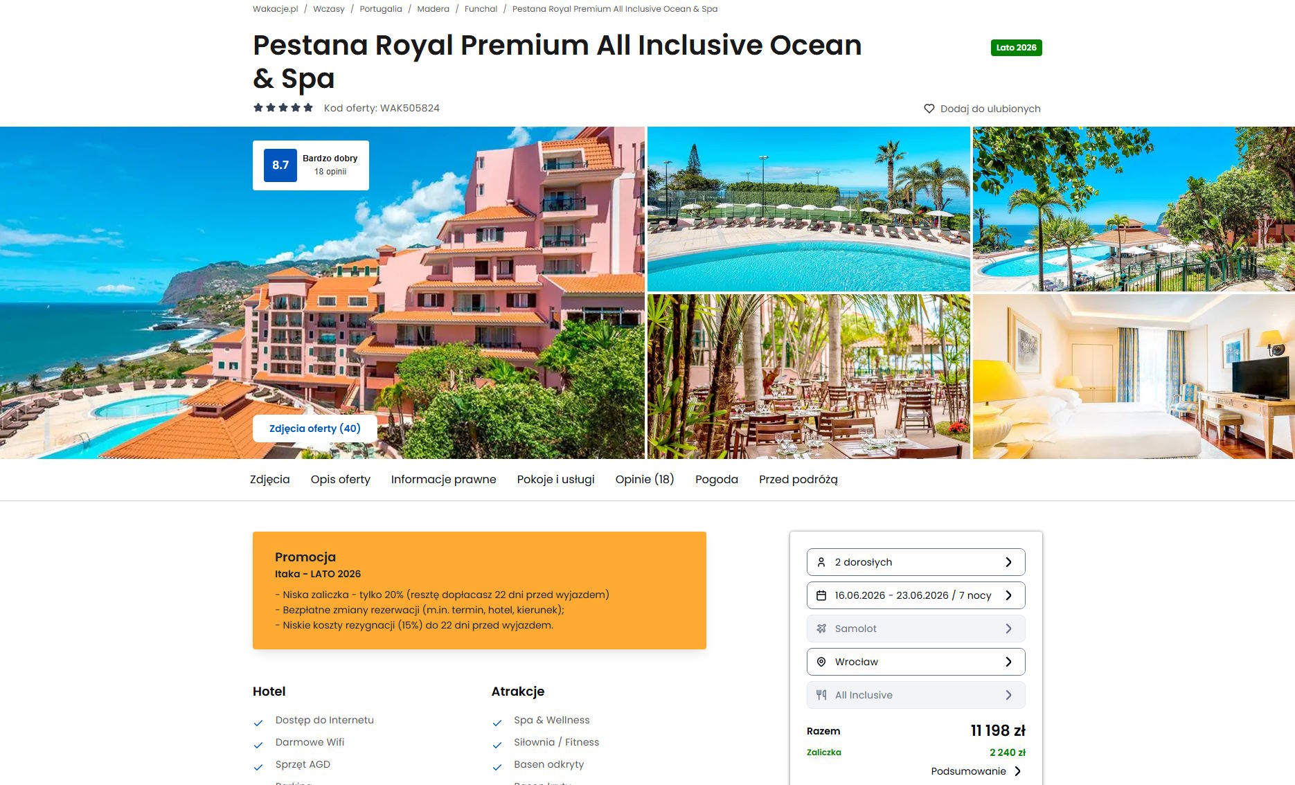 Współpracujemy z serwisem wakacje.pl i dzięki temu mogliśmy zaprezentować w/w ofertę. Treści pochodzą z serwisu wakacje.pl. Stanowią własność prawnie chronioną należącą do Wakacje.pl S.A. i/lub jej partnerów