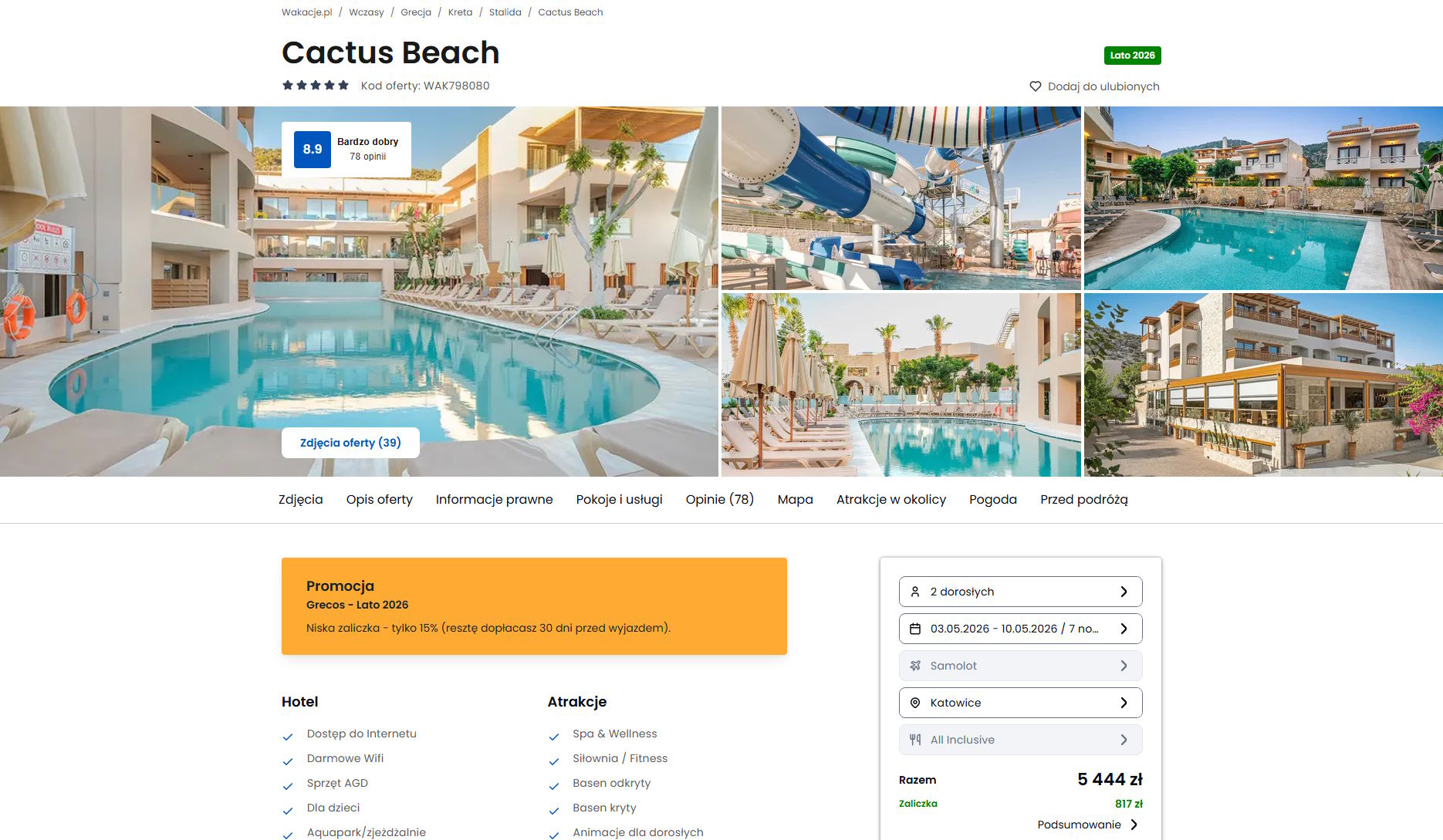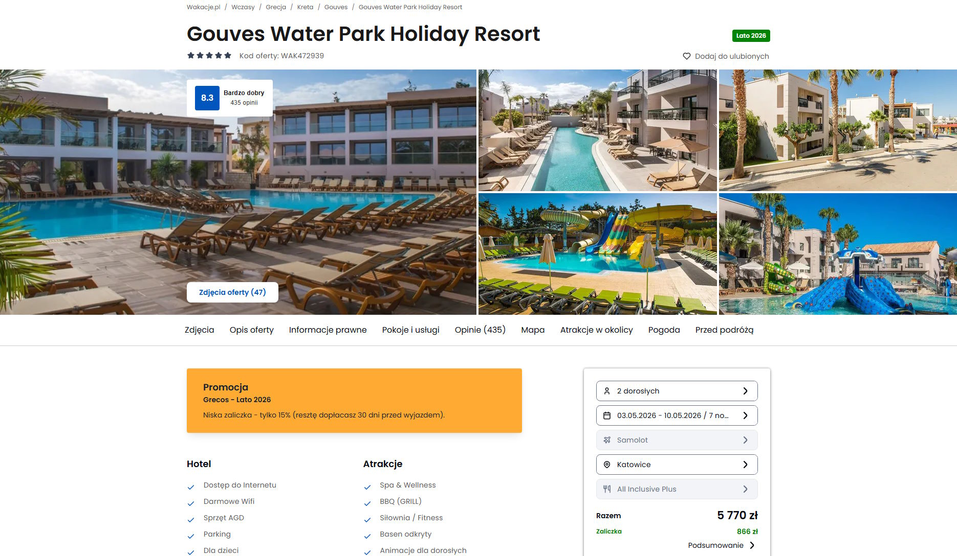 Współpracujemy z serwisem wakacje.pl i dzięki temu mogliśmy zaprezentować w/w ofertę. Treści pochodzą z serwisu wakacje.pl. Stanowią własność prawnie chronioną należącą do Wakacje.pl S.A. i/lub jej partnerów