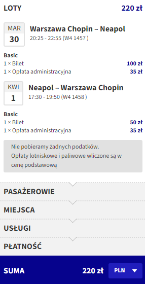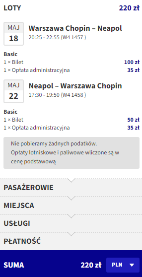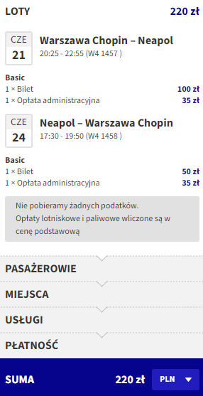 Warszawa (WAW) – Neapol (NAP) od ~220 PLN w dwie strony: