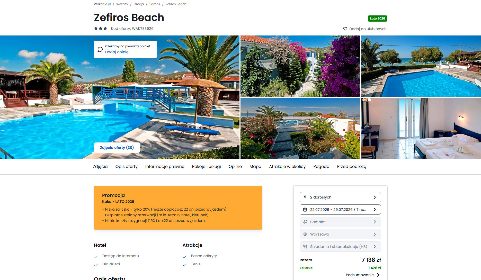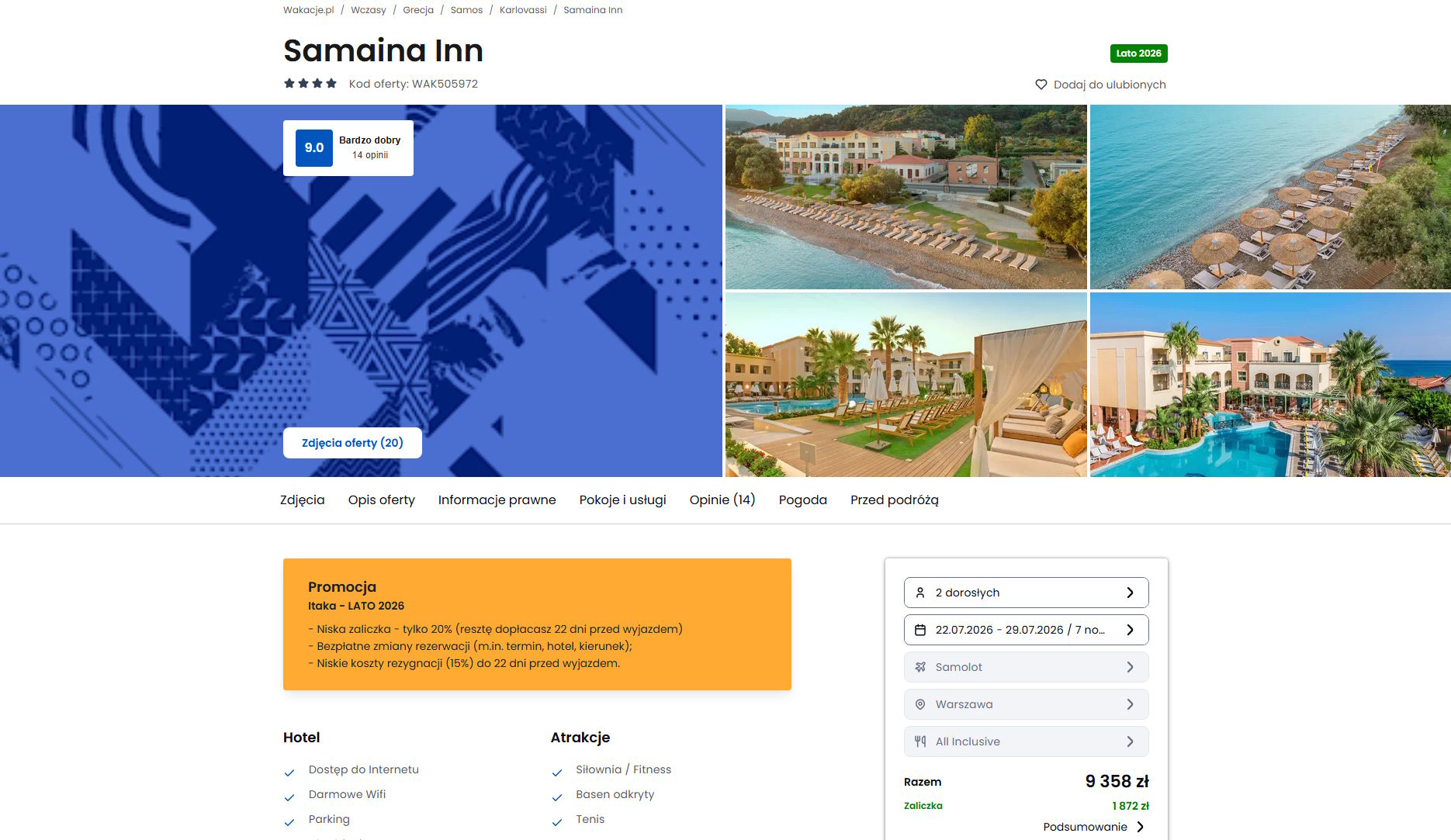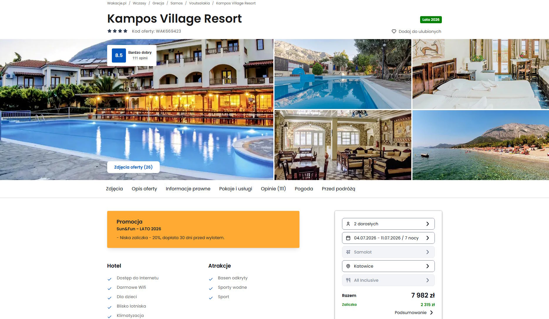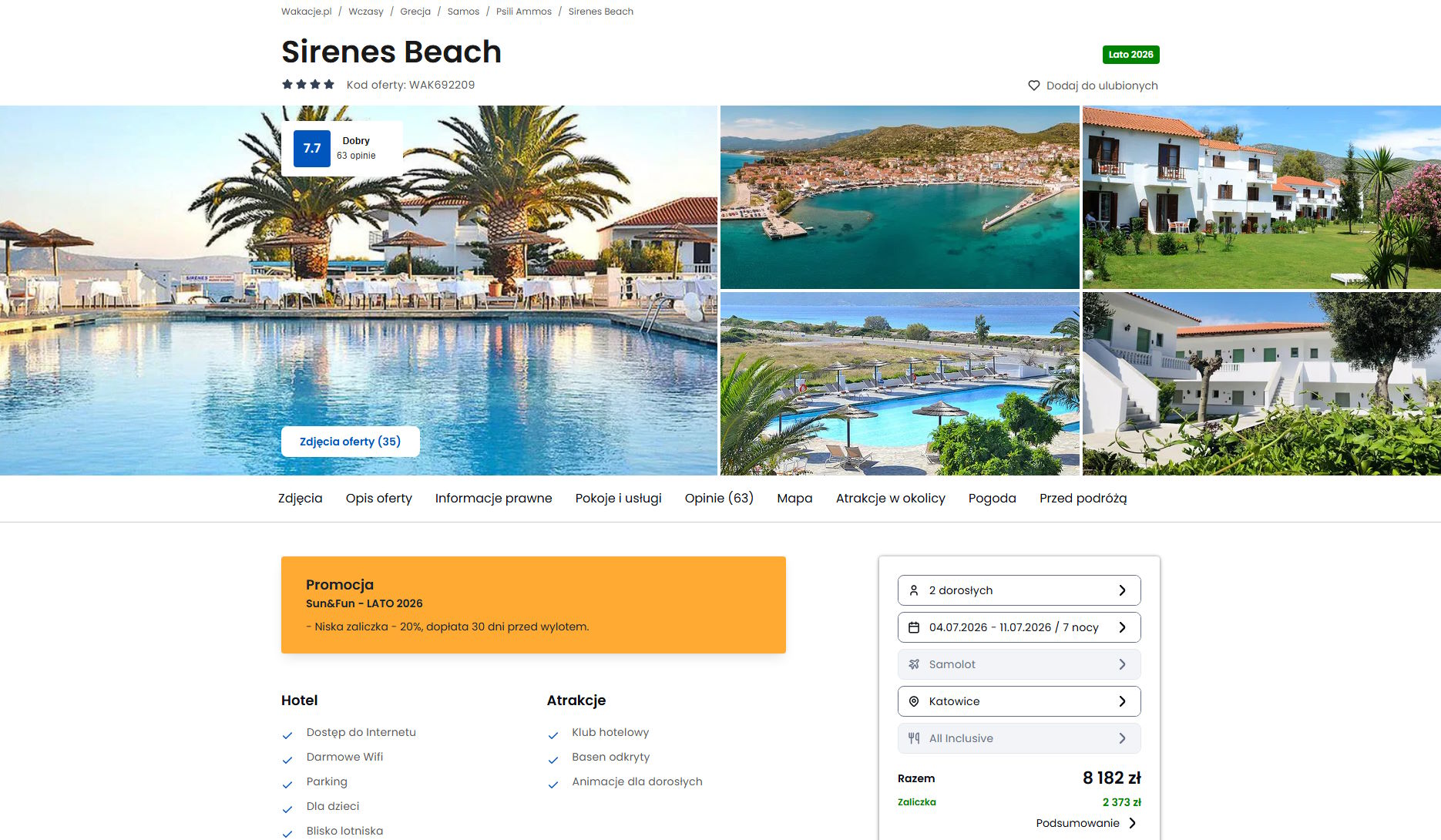 Współpracujemy z serwisem wakacje.pl i dzięki temu mogliśmy zaprezentować w/w ofertę. Treści pochodzą z serwisu wakacje.pl. Stanowią własność prawnie chronioną należącą do Wakacje.pl S.A. i/lub jej partnerów