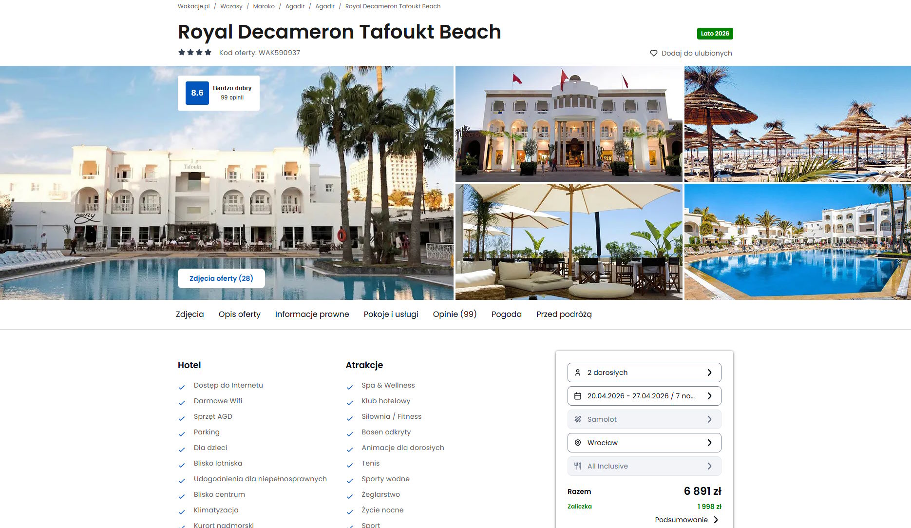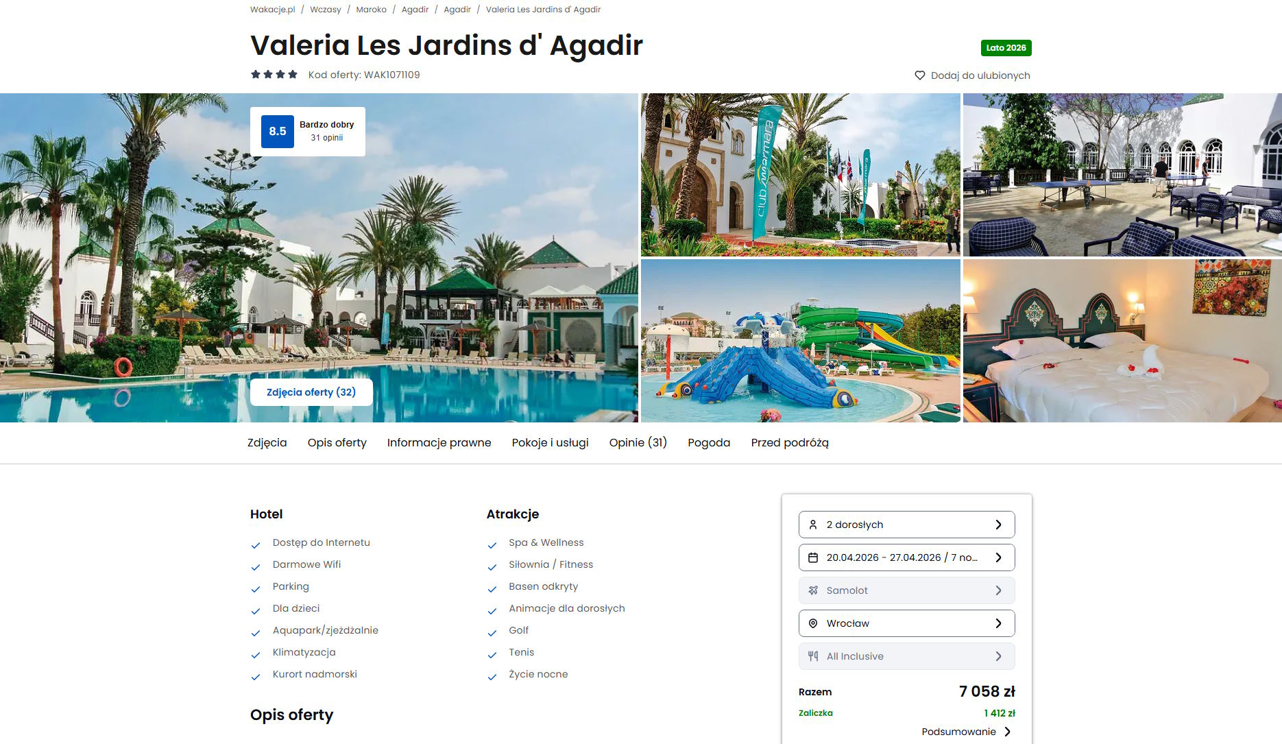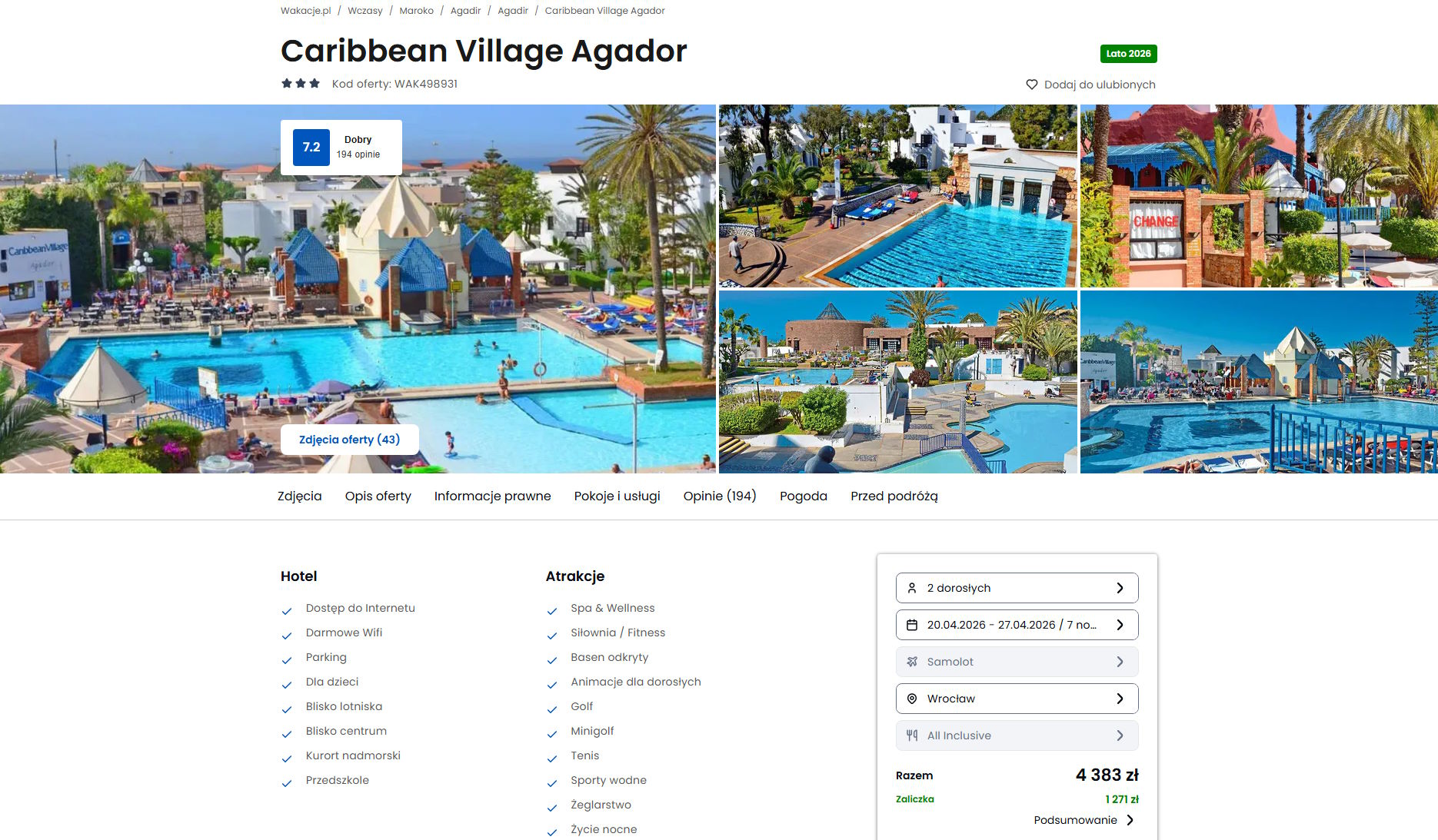 Współpracujemy z serwisem wakacje.pl i dzięki temu mogliśmy zaprezentować w/w ofertę. Treści pochodzą z serwisu wakacje.pl. Stanowią własność prawnie chronioną należącą do Wakacje.pl S.A. i/lub jej partnerów