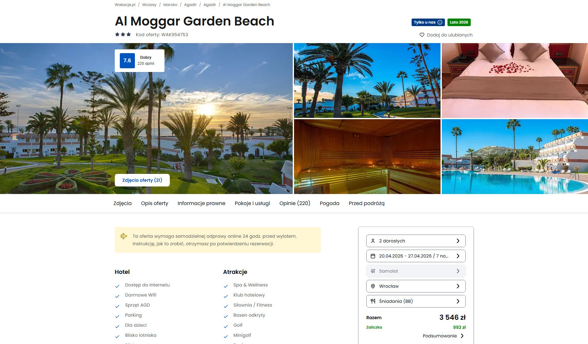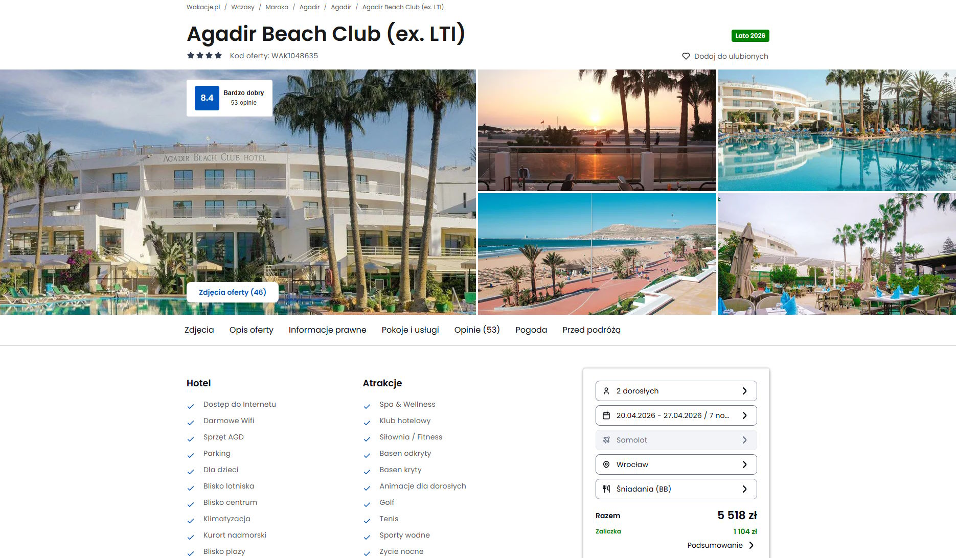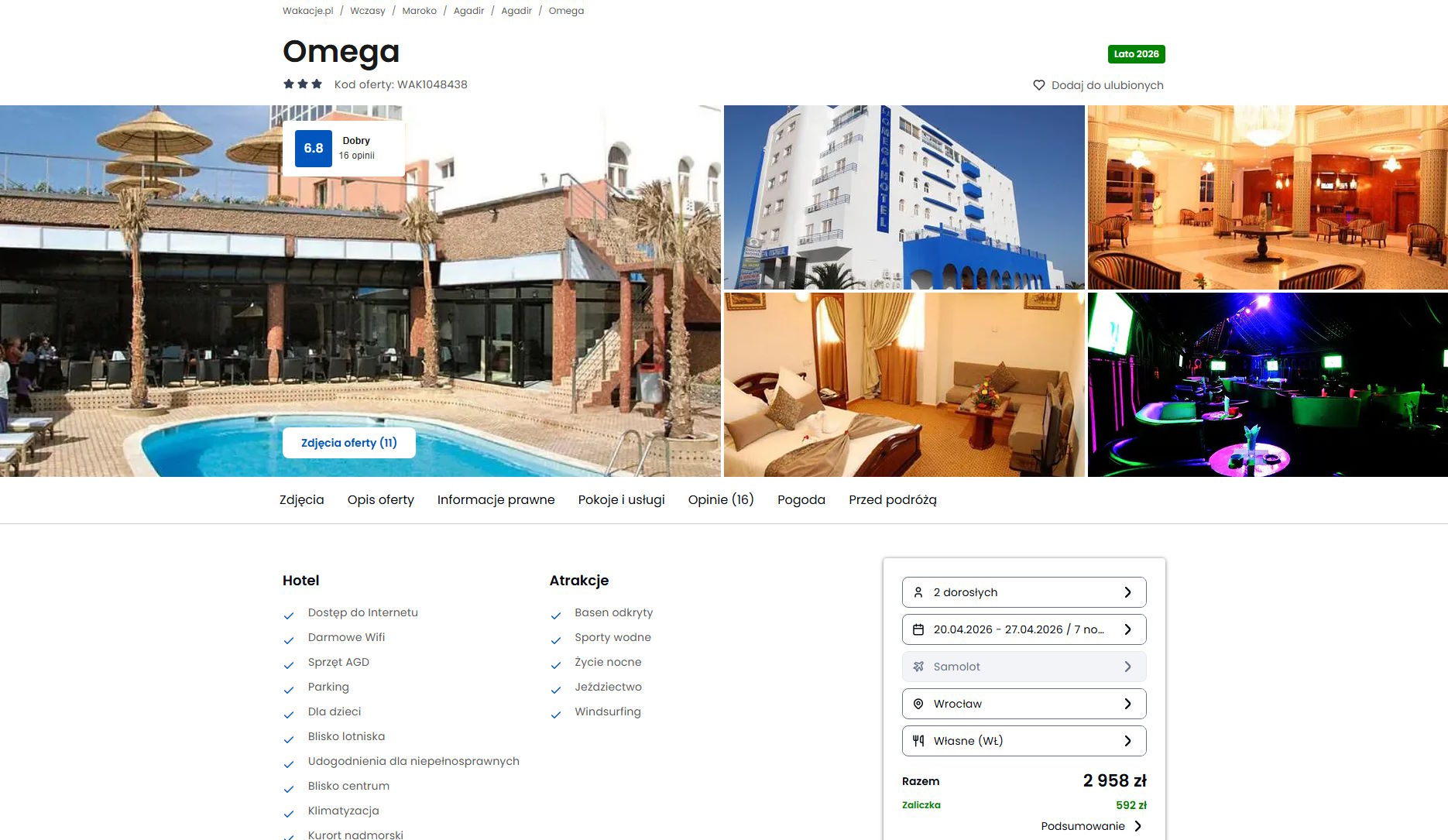 Współpracujemy z serwisem wakacje.pl i dzięki temu mogliśmy zaprezentować w/w ofertę. Treści pochodzą z serwisu wakacje.pl. Stanowią własność prawnie chronioną należącą do Wakacje.pl S.A. i/lub jej partnerów