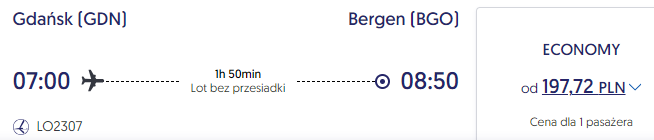 Gdańsk – Bergen od 199 PLN w jedną stronę (z bagażem!)