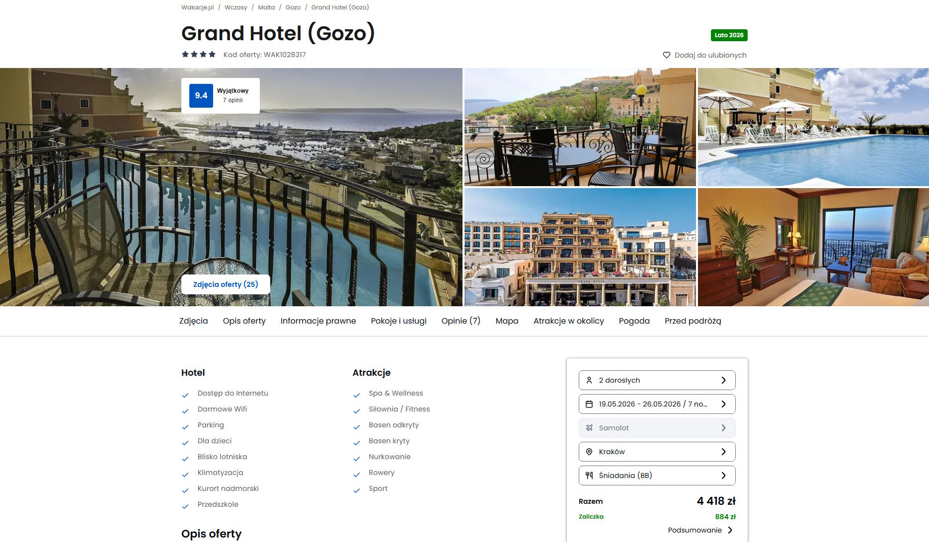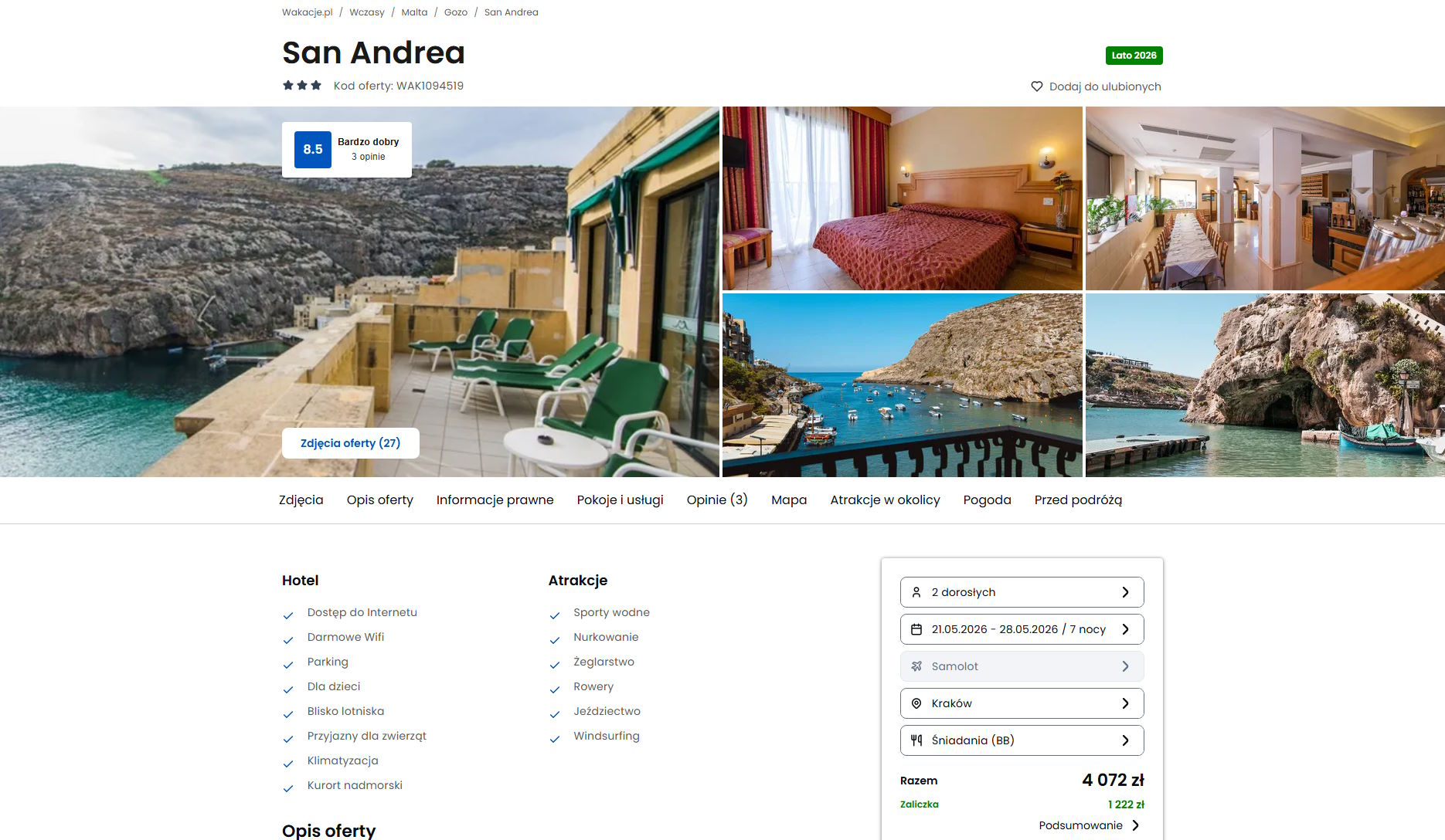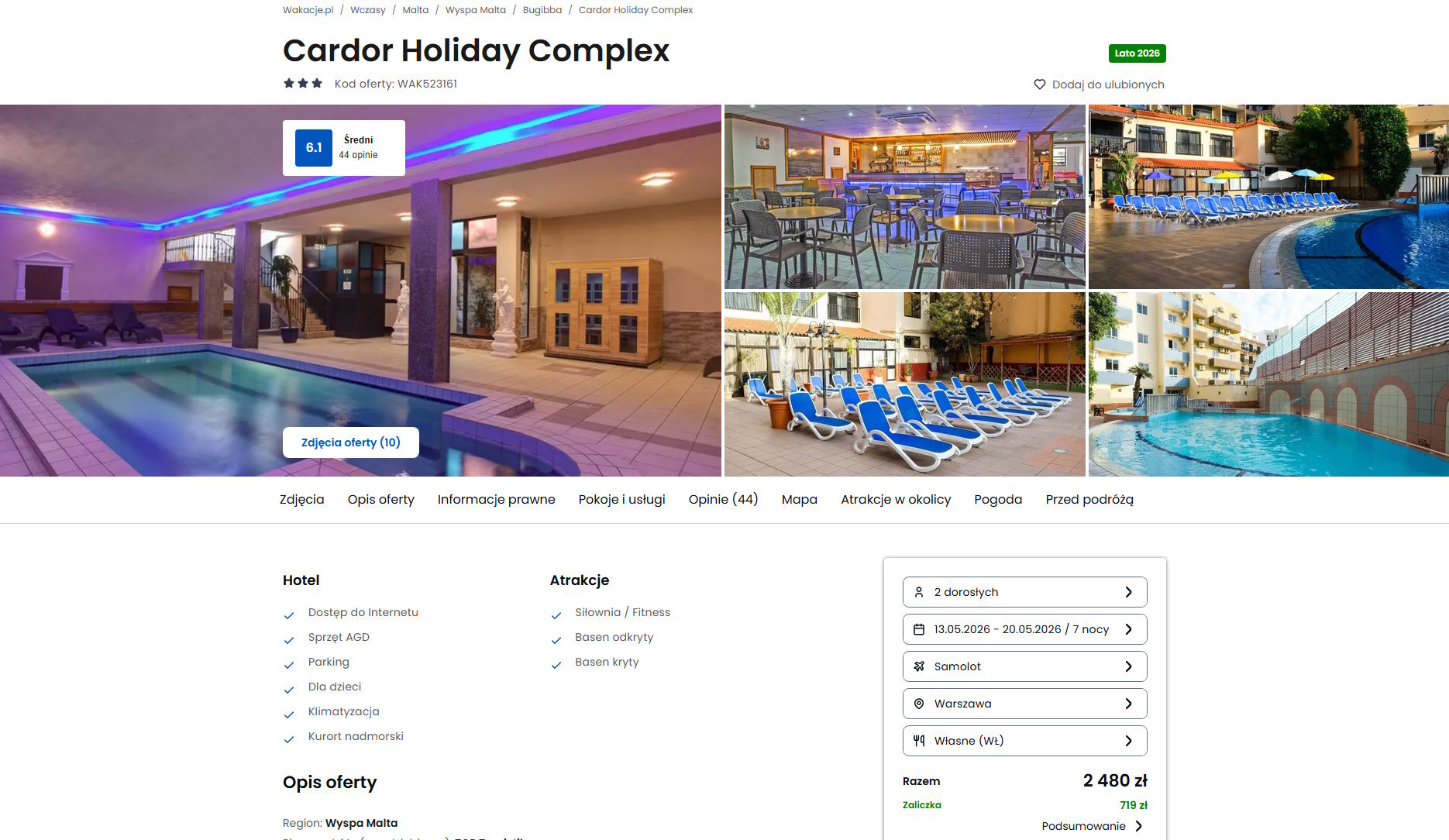 Współpracujemy z serwisem wakacje.pl i dzięki temu mogliśmy zaprezentować w/w ofertę. Treści pochodzą z serwisu wakacje.pl. Stanowią własność prawnie chronioną należącą do Wakacje.pl S.A. i/lub jej partnerów