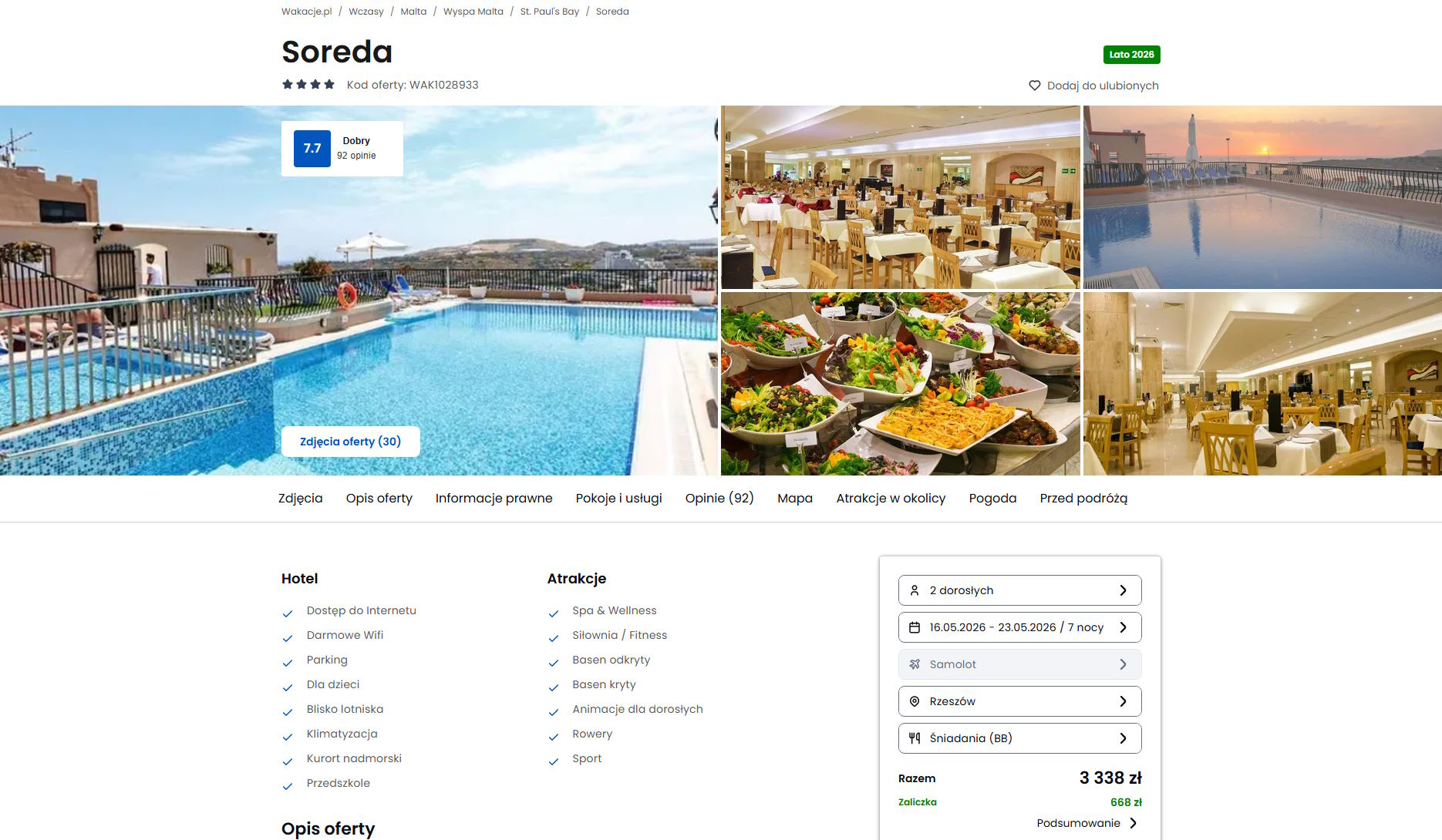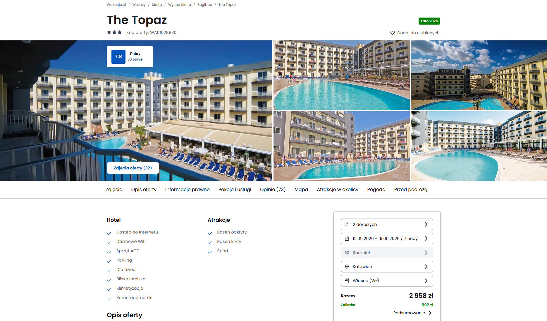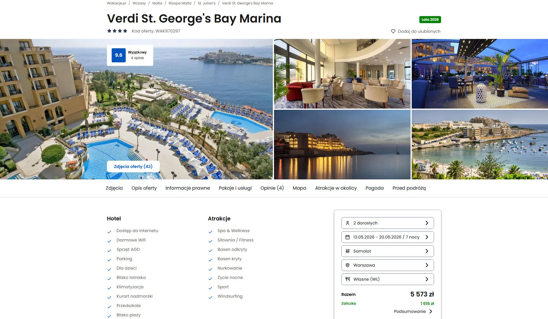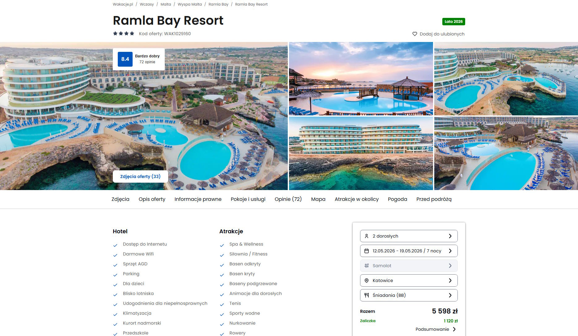 Współpracujemy z serwisem wakacje.pl i dzięki temu mogliśmy zaprezentować w/w ofertę. Treści pochodzą z serwisu wakacje.pl. Stanowią własność prawnie chronioną należącą do Wakacje.pl S.A. i/lub jej partnerów