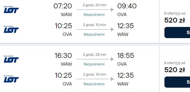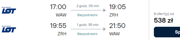 Dostępne są też loty z innych polskich lotnisk (z przesiadką w Warszawie) w niewiele wyższej (bądź nawet tej samej!) cenie – warto skorzystać!