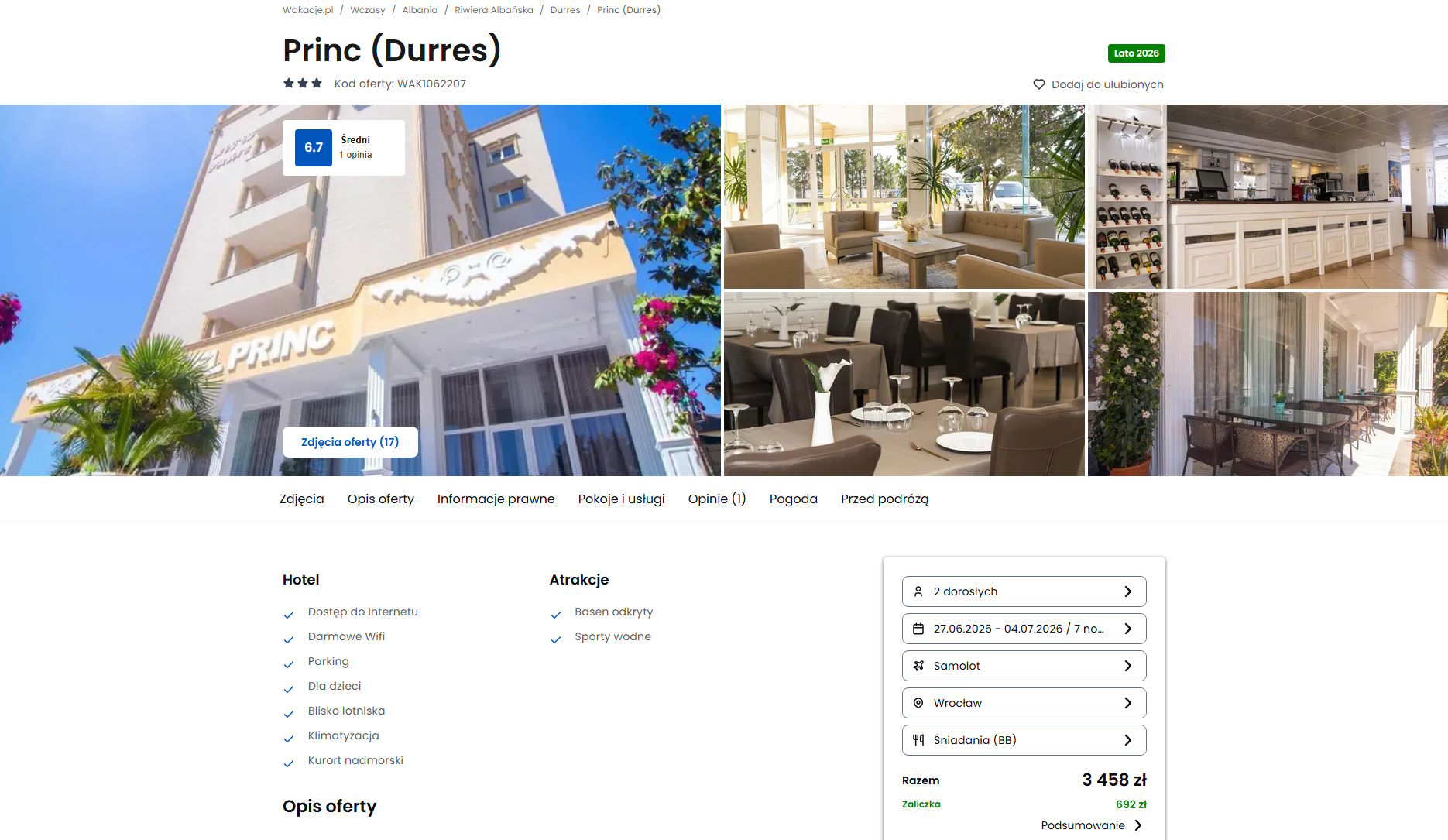 Współpracujemy z serwisem wakacje.pl i dzięki temu mogliśmy zaprezentować w/w ofertę. Treści pochodzą z serwisu wakacje.pl. Stanowią własność prawnie chronioną należącą do Wakacje.pl S.A. i/lub jej partnerów