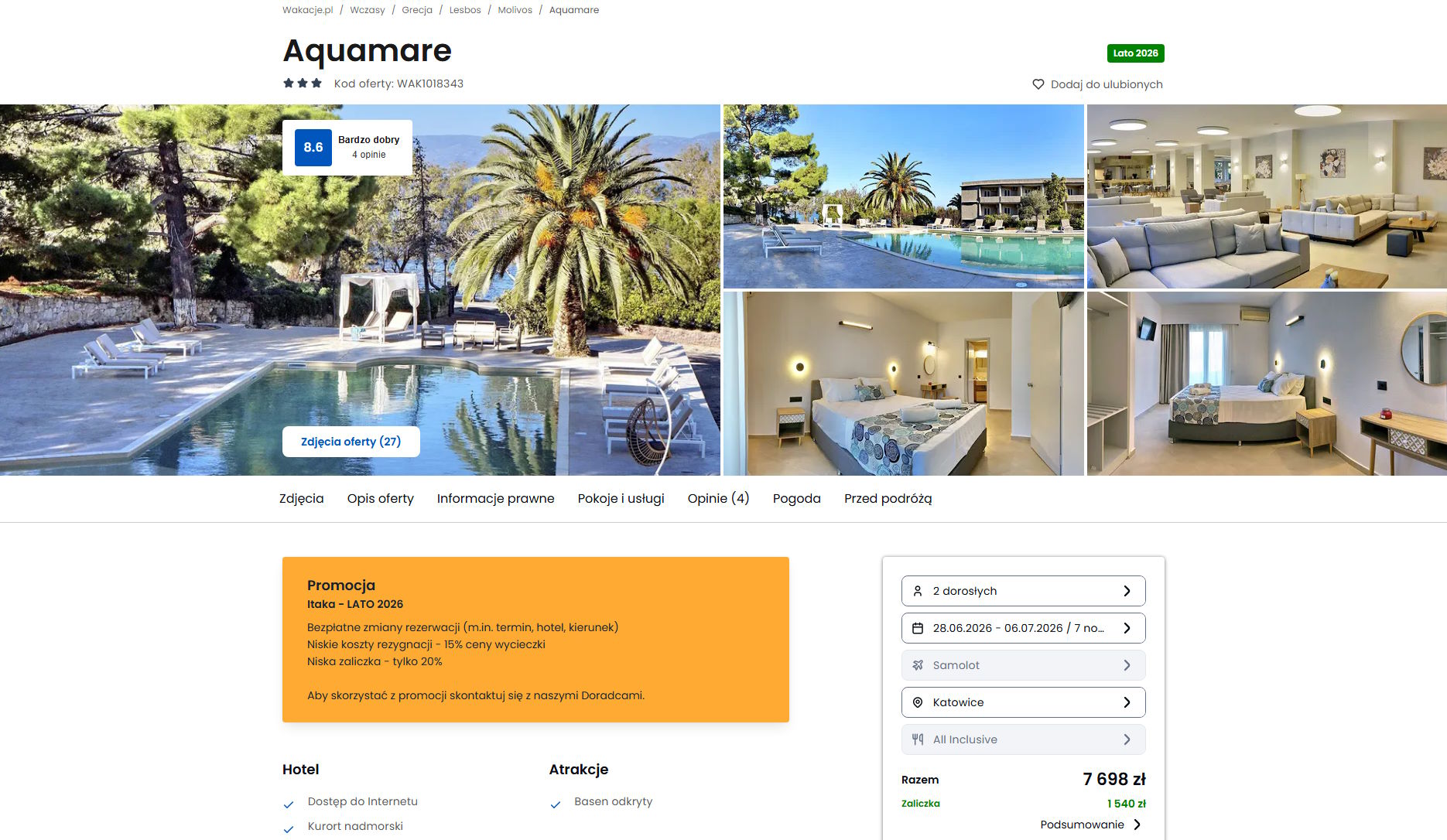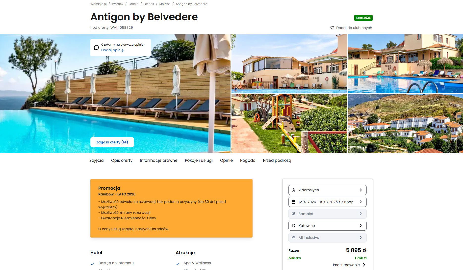 Współpracujemy z serwisem wakacje.pl i dzięki temu mogliśmy zaprezentować w/w ofertę. Treści pochodzą z serwisu wakacje.pl. Stanowią własność prawnie chronioną należącą do Wakacje.pl S.A. i/lub jej partnerów