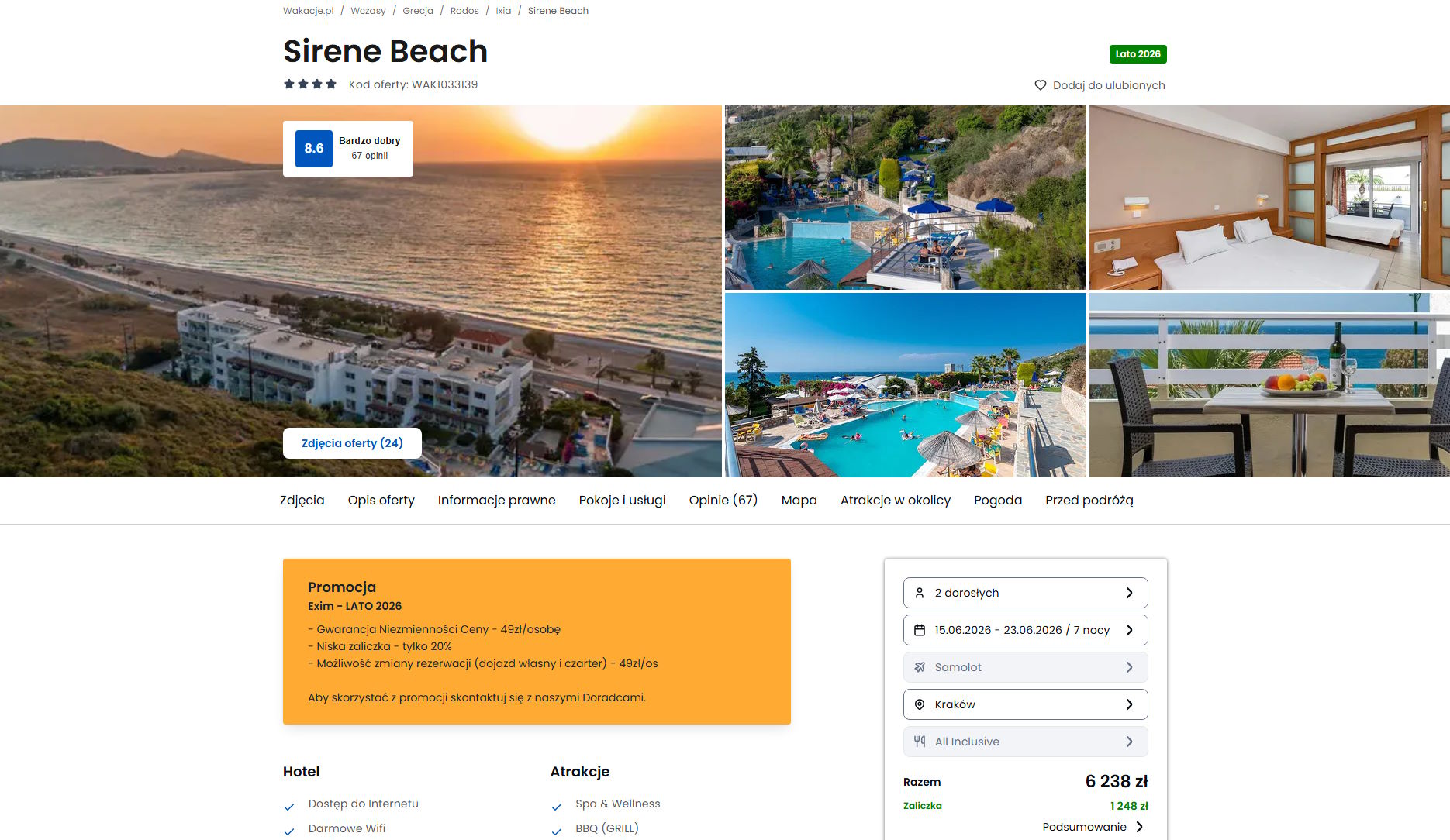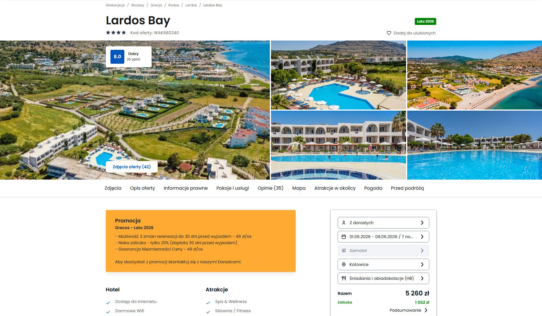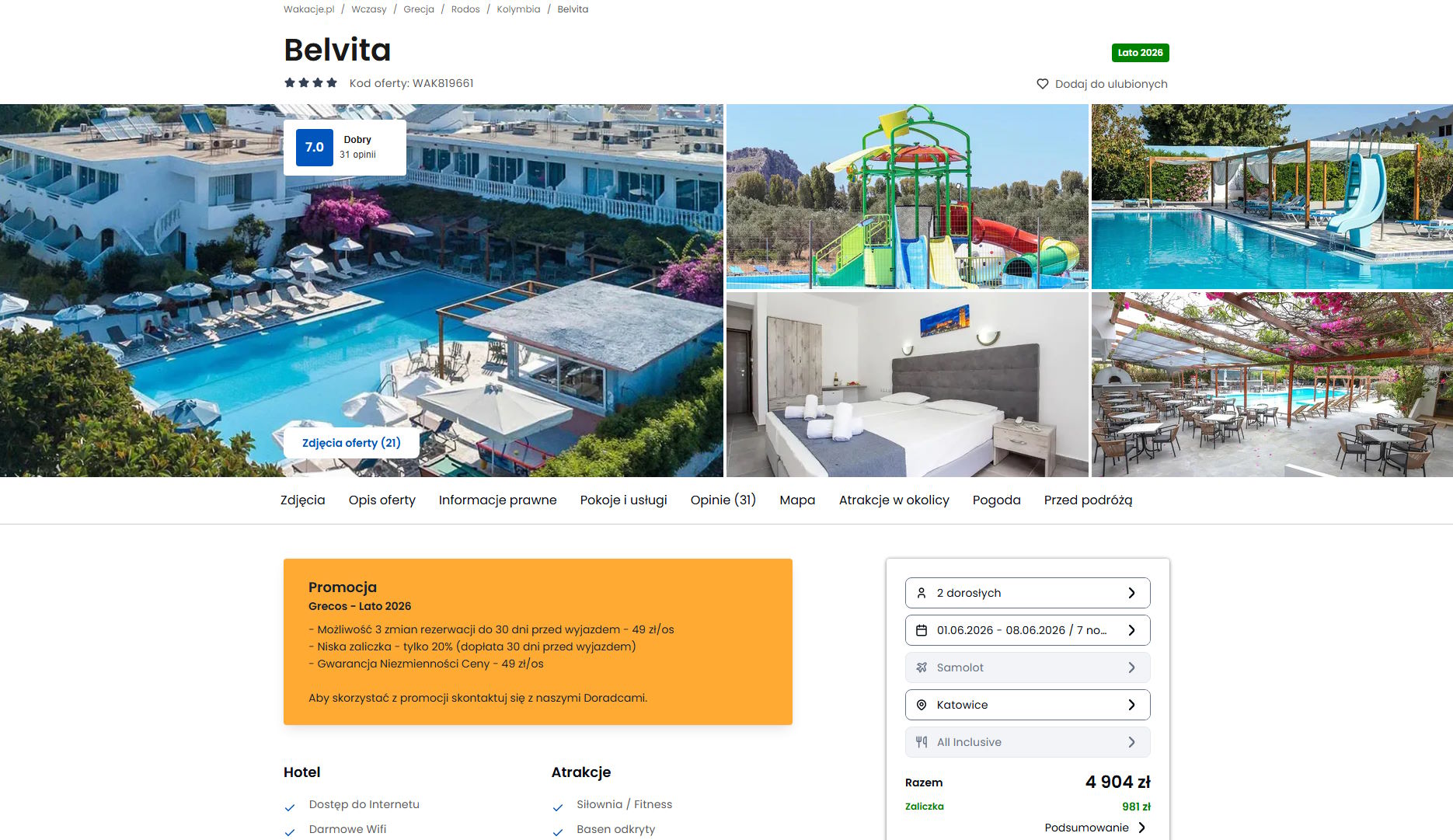 Współpracujemy z serwisem wakacje.pl i dzięki temu mogliśmy zaprezentować w/w ofertę. Treści pochodzą z serwisu wakacje.pl. Stanowią własność prawnie chronioną należącą do Wakacje.pl S.A. i/lub jej partnerów