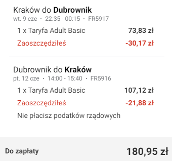 Kraków (KRK) – Dubrownik (DBV) od ~160 PLN RT: