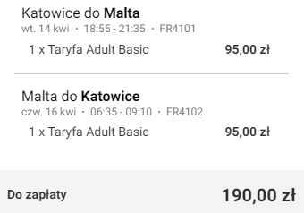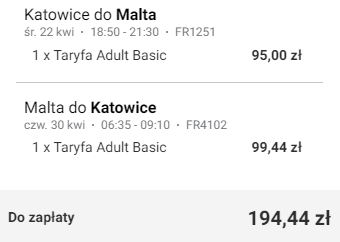 Katowice (KTW) – Malta (MLA) od ~147,50 PLN w dwie strony