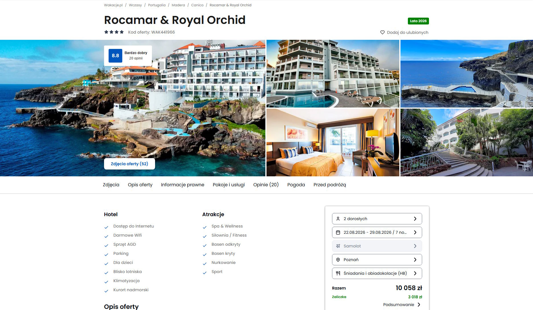 Współpracujemy z serwisem wakacje.pl i dzięki temu mogliśmy zaprezentować w/w ofertę. Treści pochodzą z serwisu wakacje.pl. Stanowią własność prawnie chronioną należącą do Wakacje.pl S.A. i/lub jej partnerów