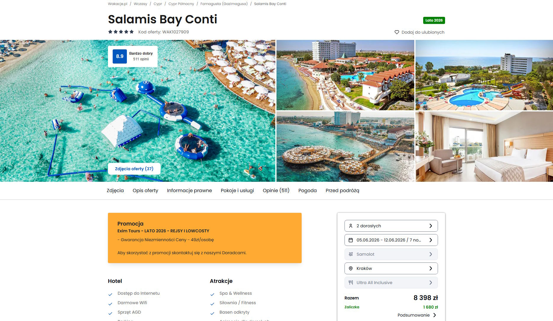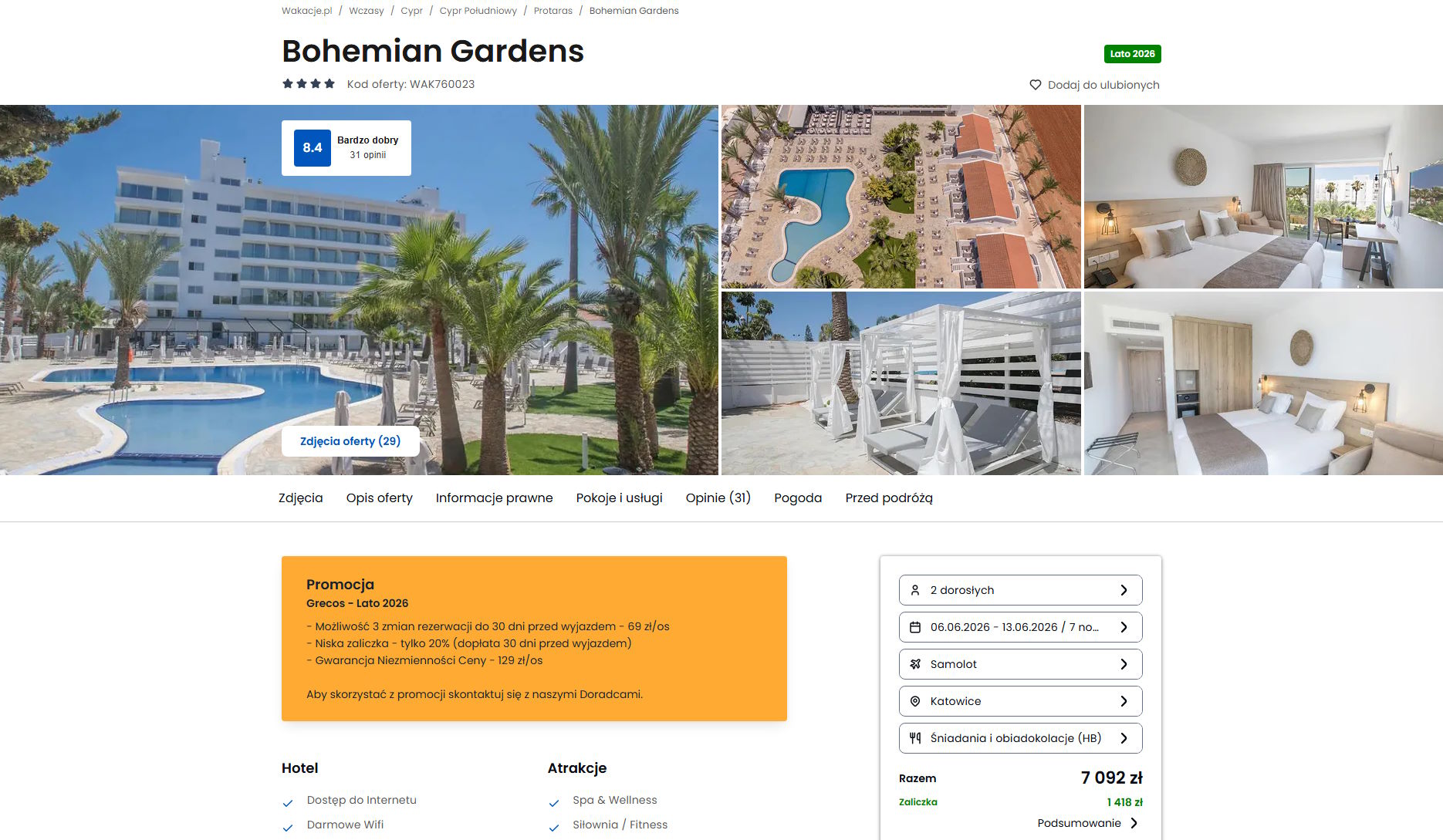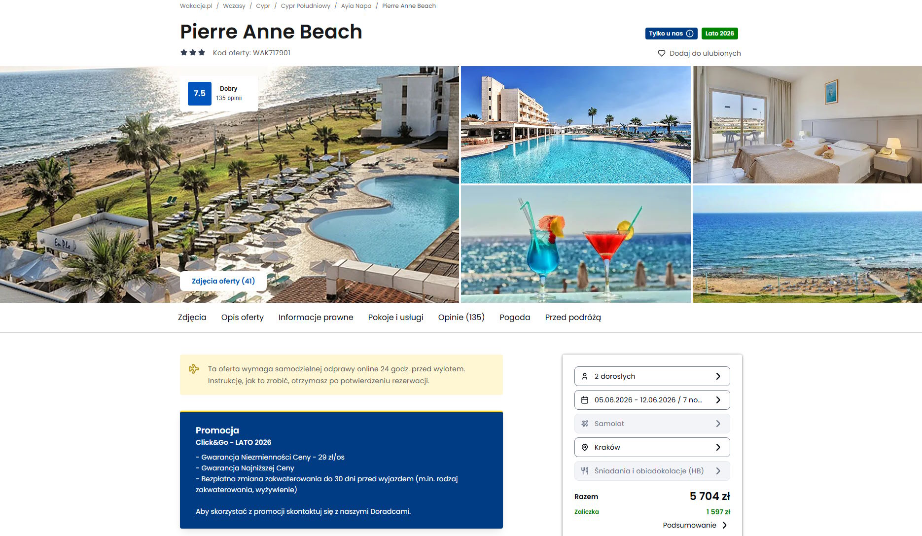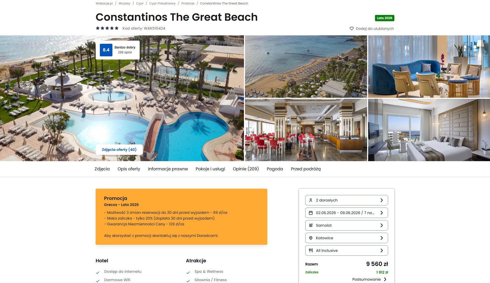 Współpracujemy z serwisem wakacje.pl i dzięki temu mogliśmy zaprezentować w/w ofertę. Treści pochodzą z serwisu wakacje.pl. Stanowią własność prawnie chronioną należącą do Wakacje.pl S.A. i/lub jej partnerów