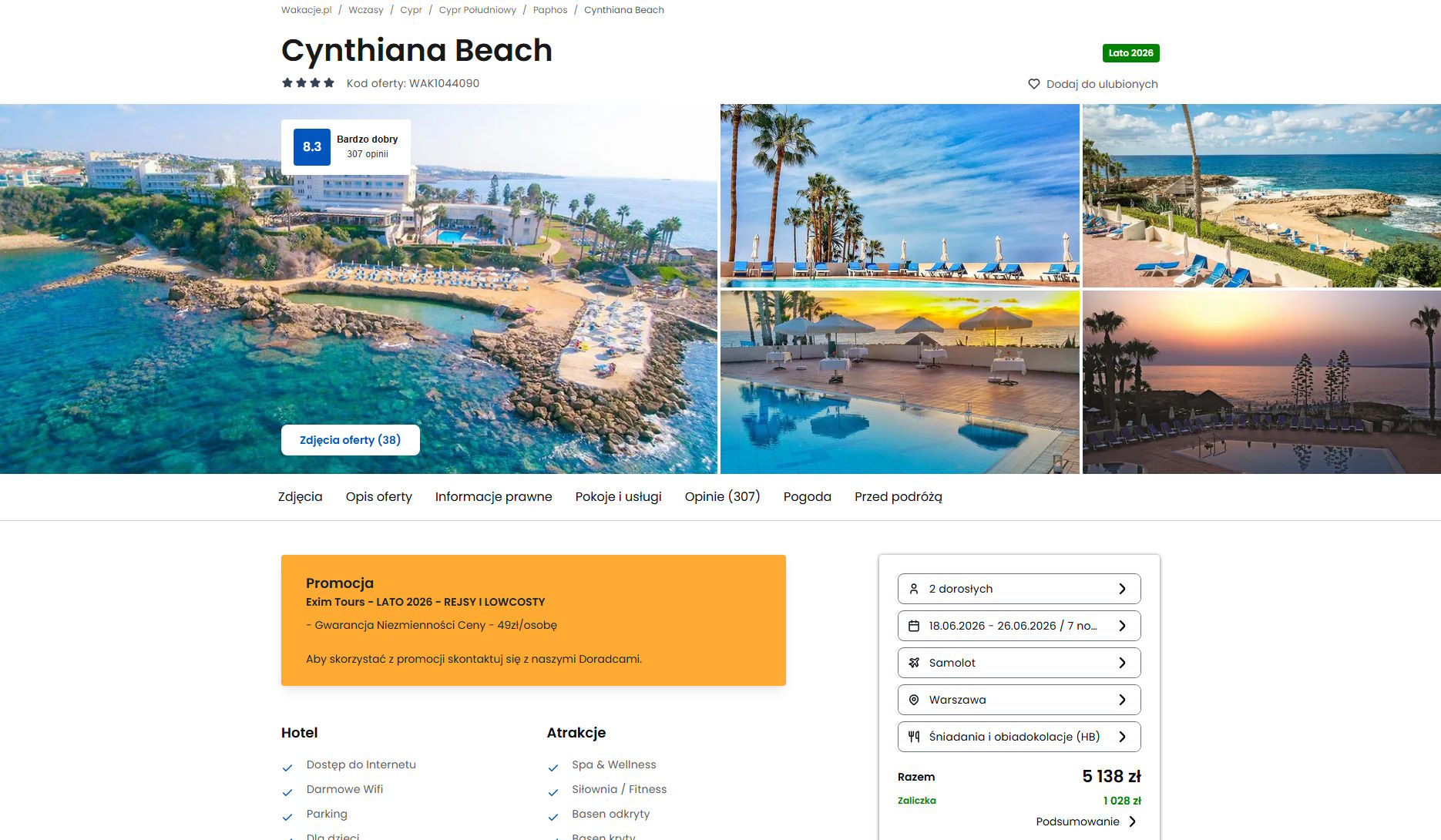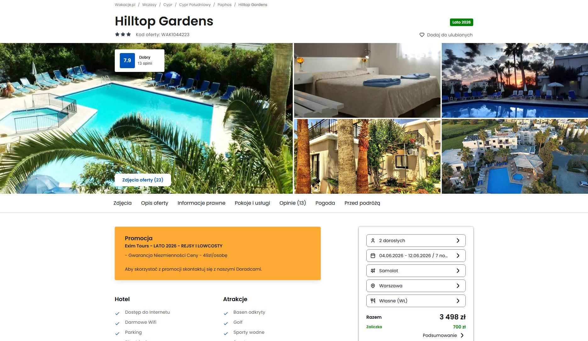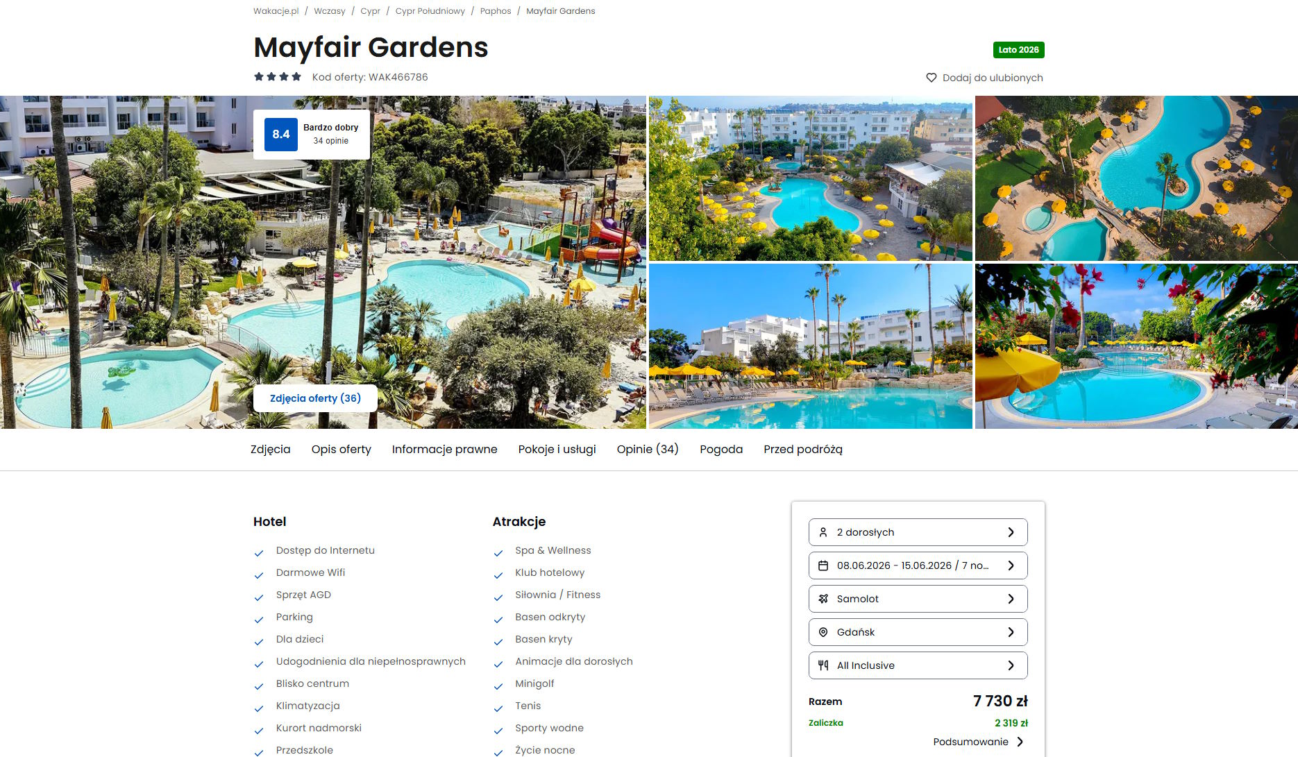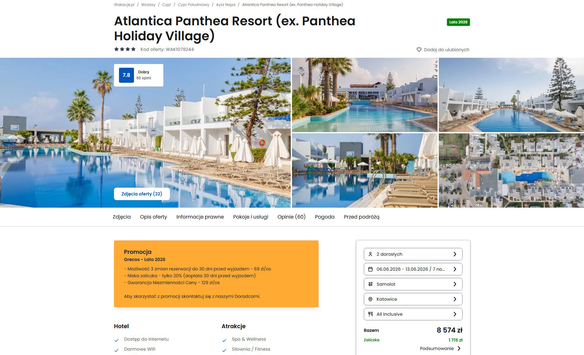 Współpracujemy z serwisem wakacje.pl i dzięki temu mogliśmy zaprezentować w/w ofertę. Treści pochodzą z serwisu wakacje.pl. Stanowią własność prawnie chronioną należącą do Wakacje.pl S.A. i/lub jej partnerów