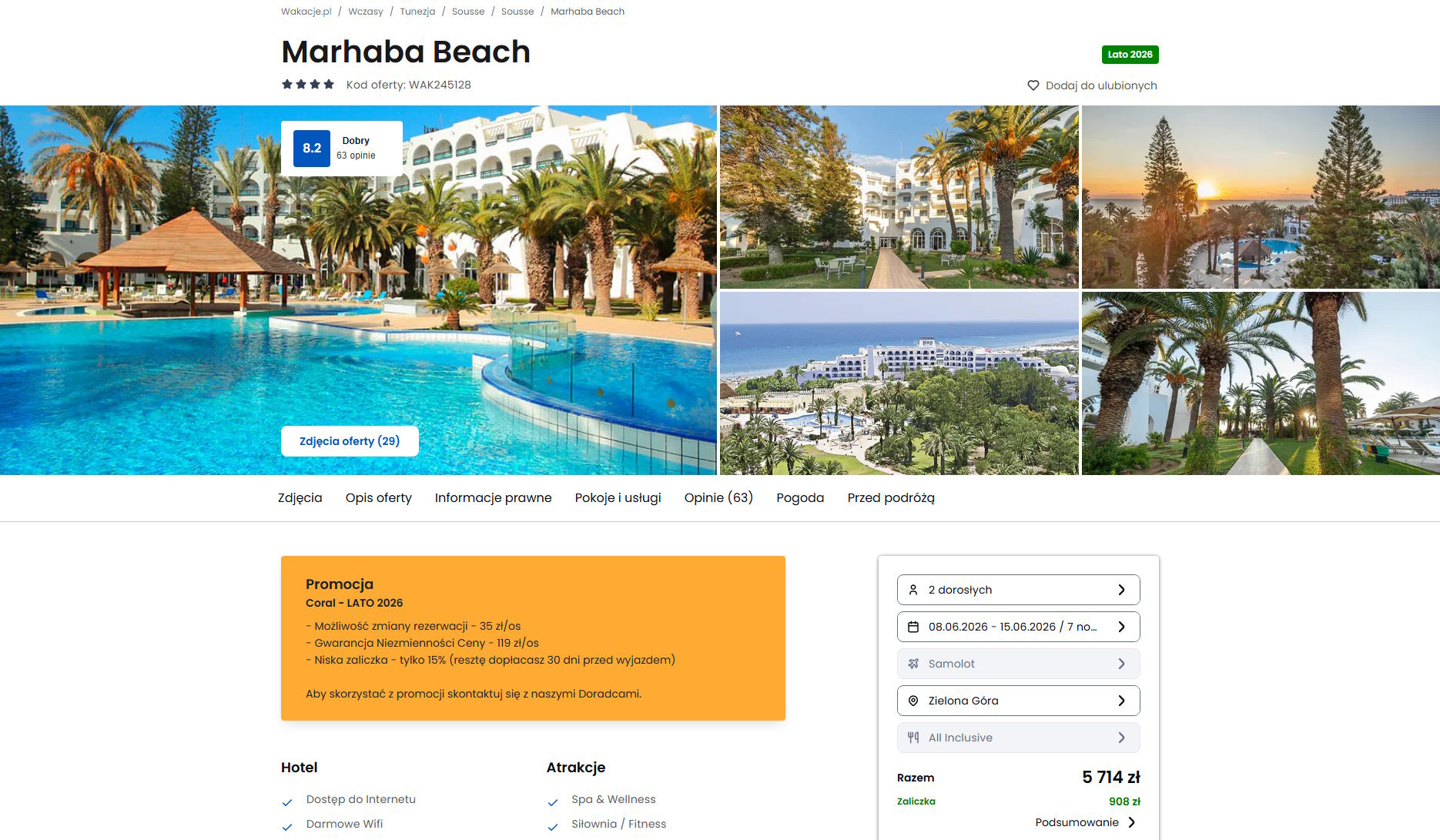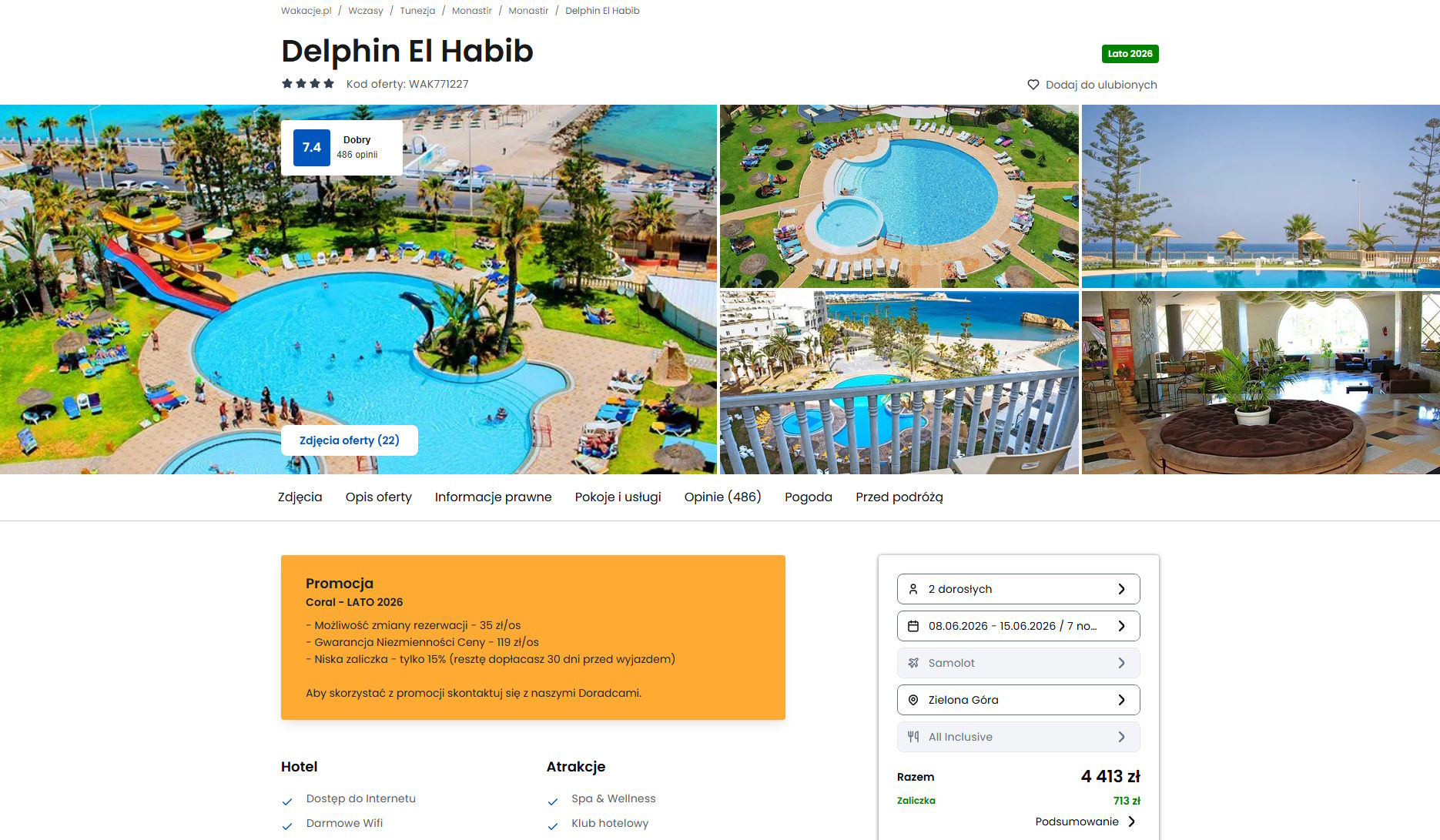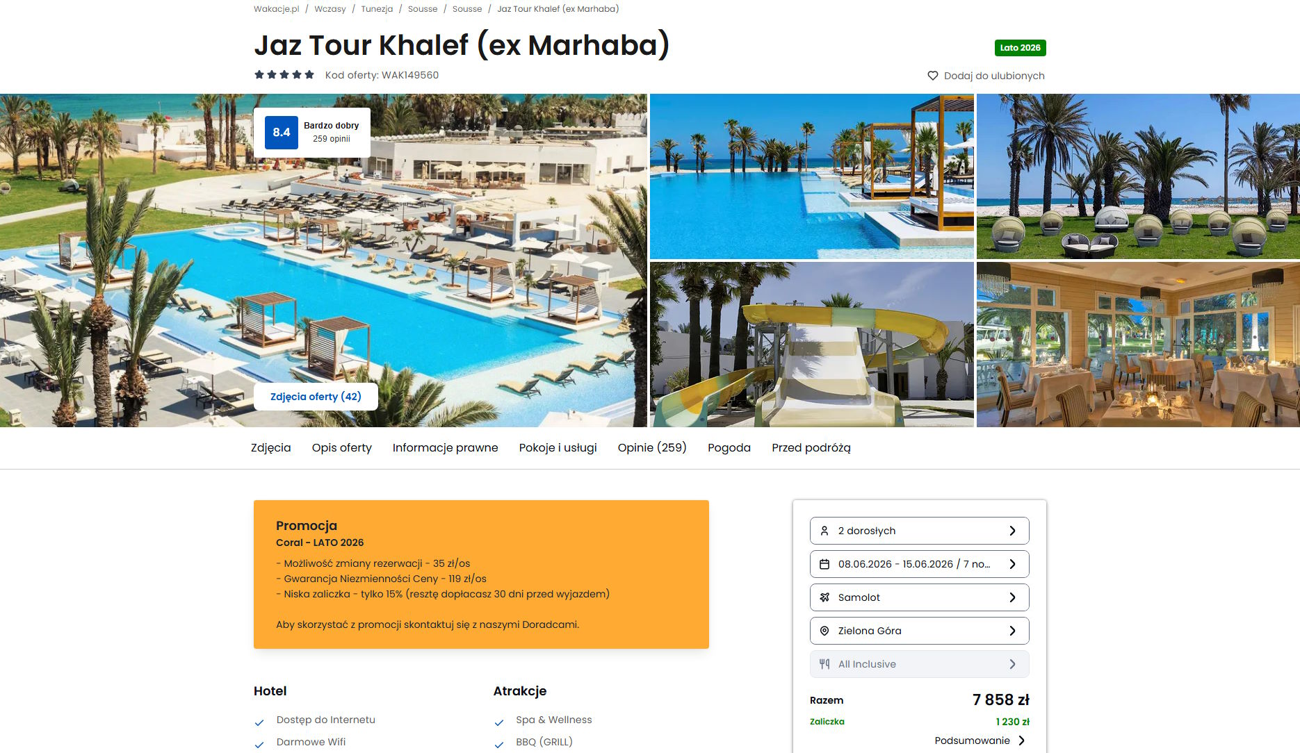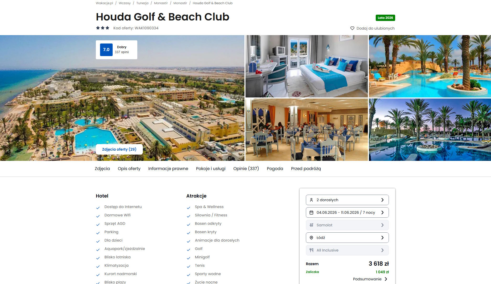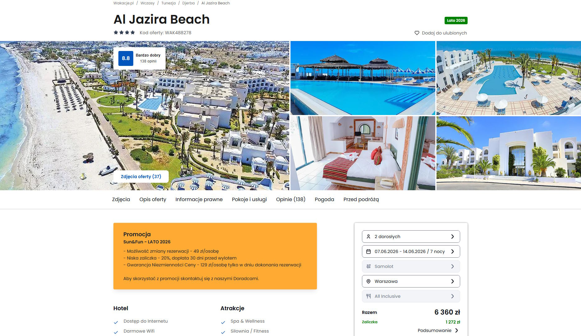 Współpracujemy z serwisem wakacje.pl i dzięki temu mogliśmy zaprezentować w/w ofertę. Treści pochodzą z serwisu wakacje.pl. Stanowią własność prawnie chronioną należącą do Wakacje.pl S.A. i/lub jej partnerów