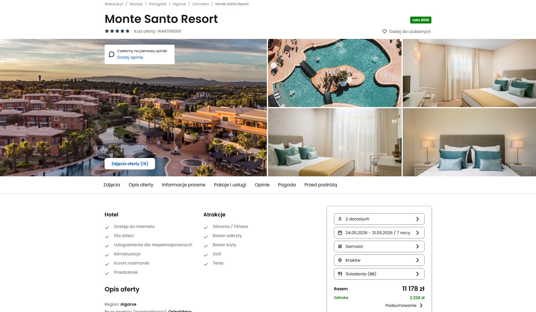 Współpracujemy z serwisem wakacje.pl i dzięki temu mogliśmy zaprezentować w/w ofertę. Treści pochodzą z serwisu wakacje.pl. Stanowią własność prawnie chronioną należącą do Wakacje.pl S.A. i/lub jej partnerów