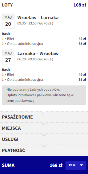 Wrocław (WRO) – Larnaka (LCA) od ~168 PLN RT
