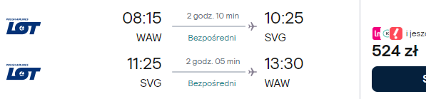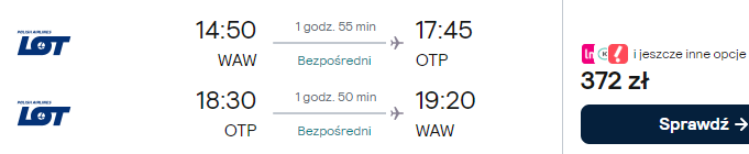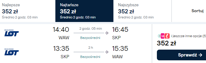 Dostępne są też loty z innych polskich lotnisk (z przesiadką w Warszawie) w niewiele wyższej (bądź nawet tej samej!) cenie – warto skorzystać!