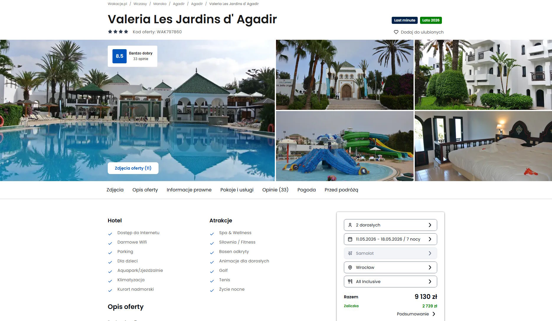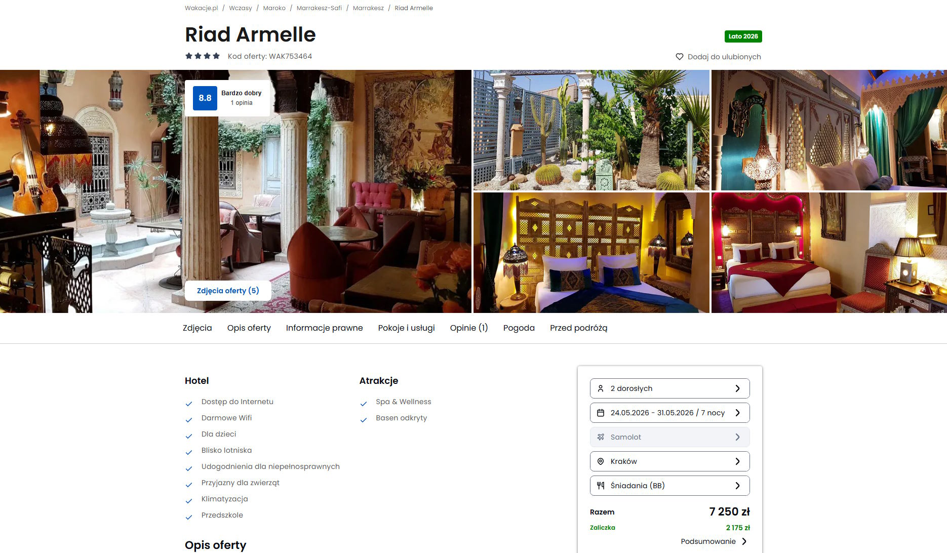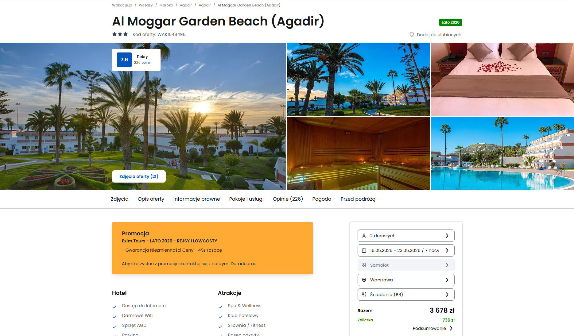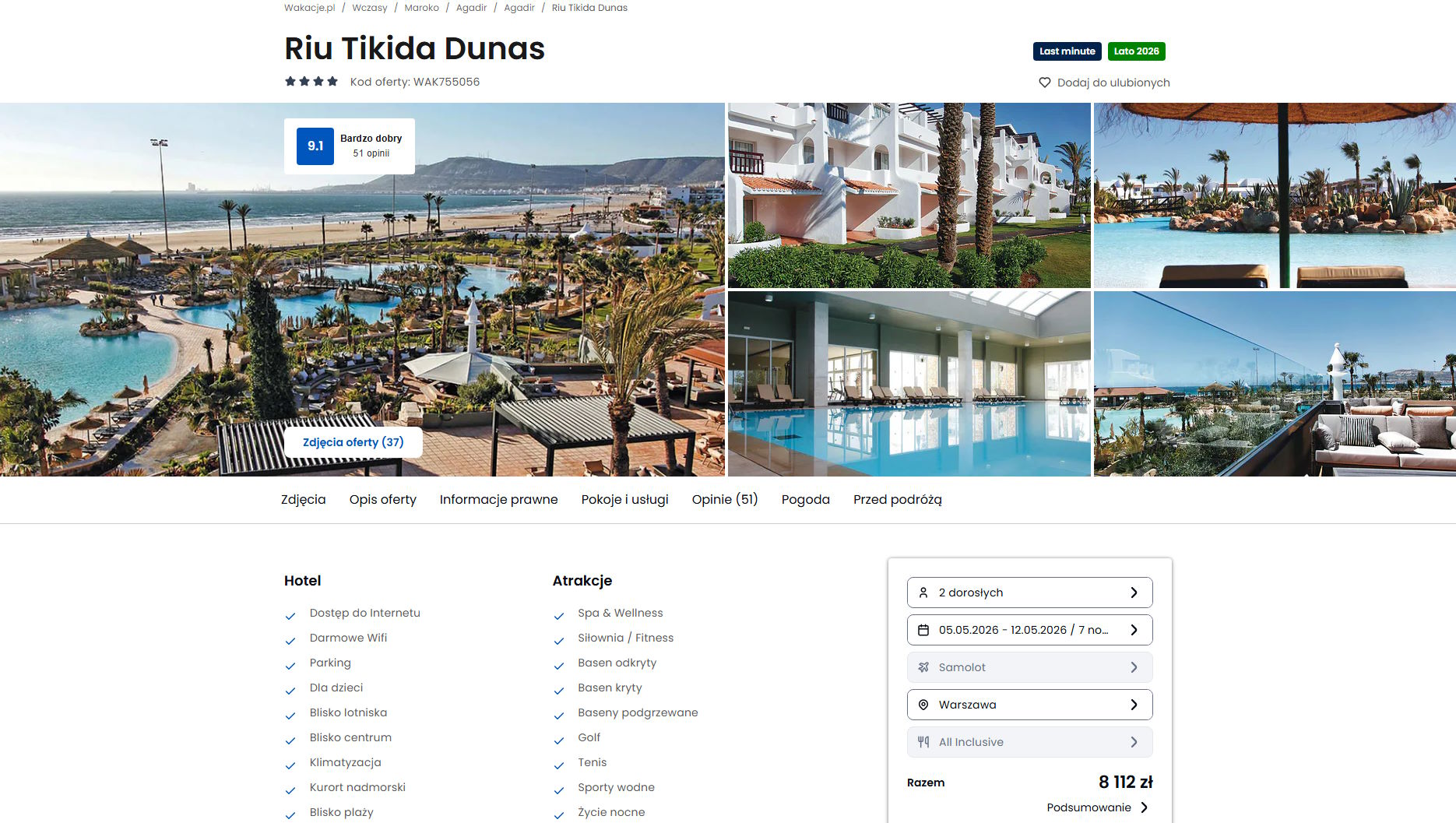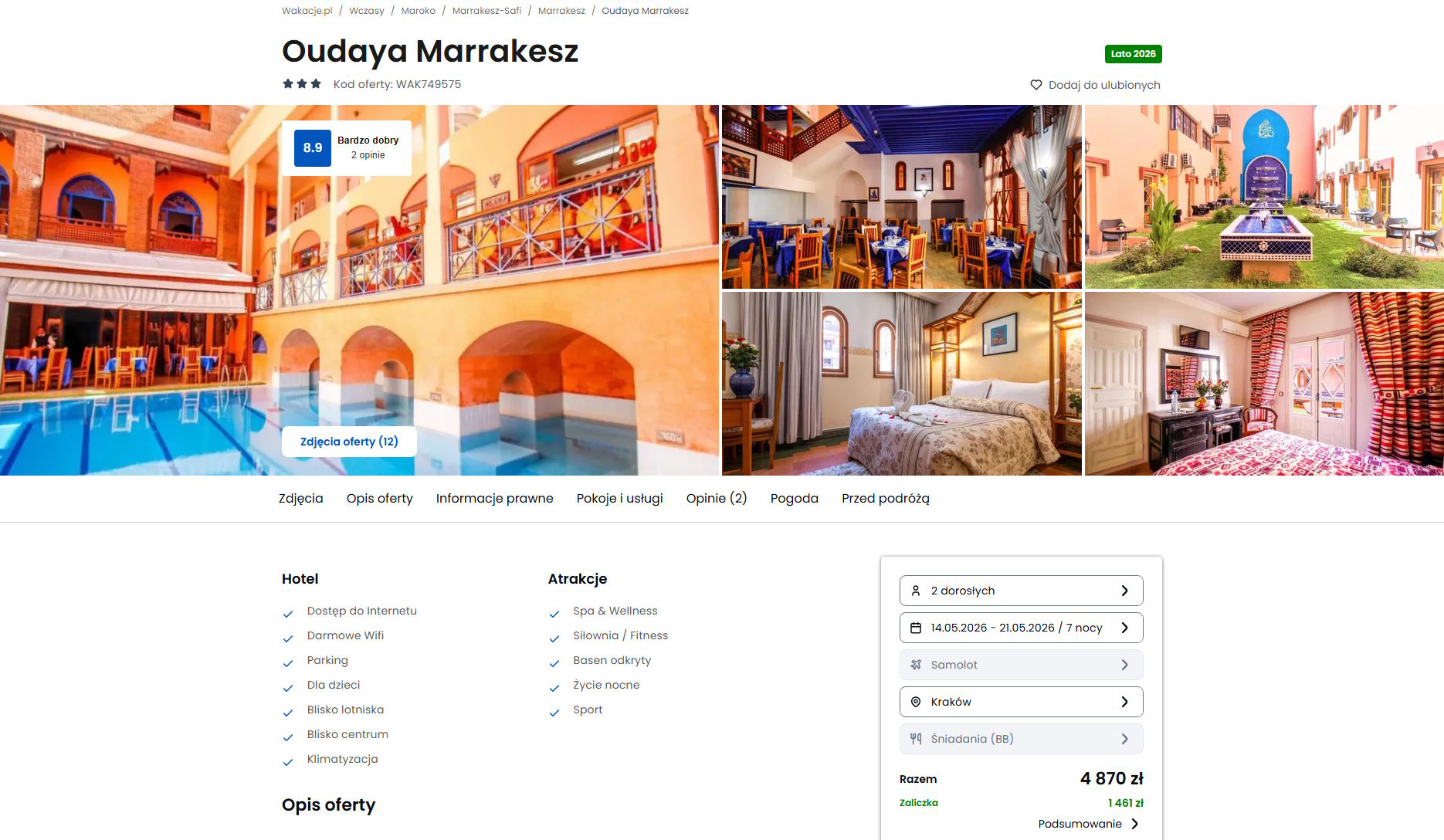 Współpracujemy z serwisem wakacje.pl i dzięki temu mogliśmy zaprezentować w/w ofertę. Treści pochodzą z serwisu wakacje.pl. Stanowią własność prawnie chronioną należącą do Wakacje.pl S.A. i/lub jej partnerów