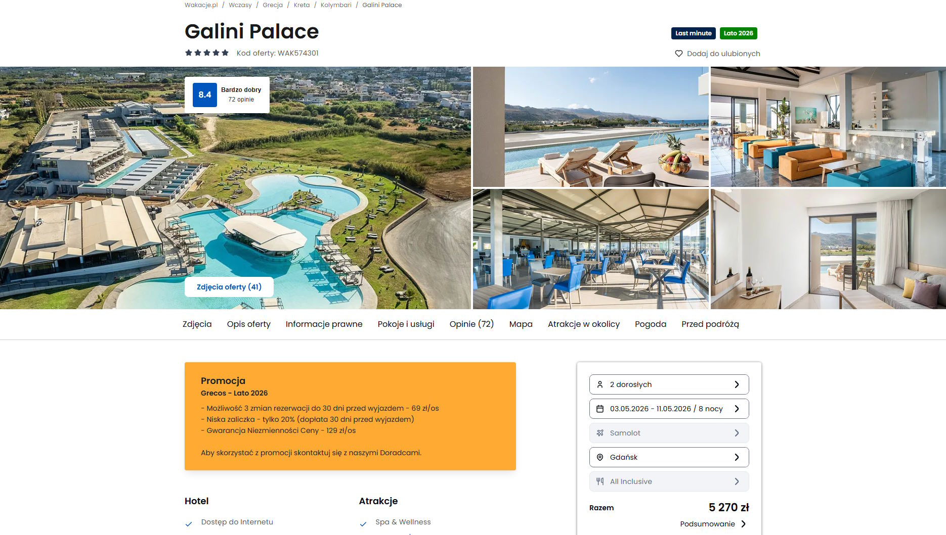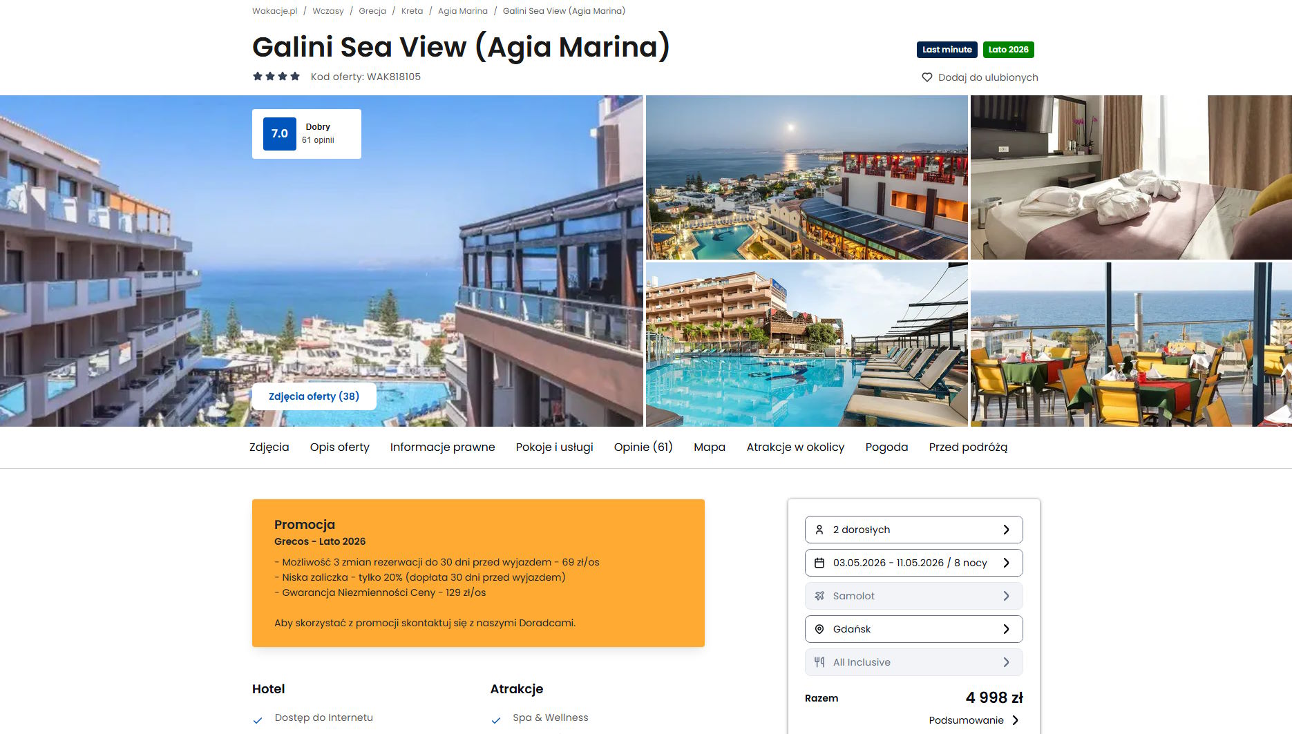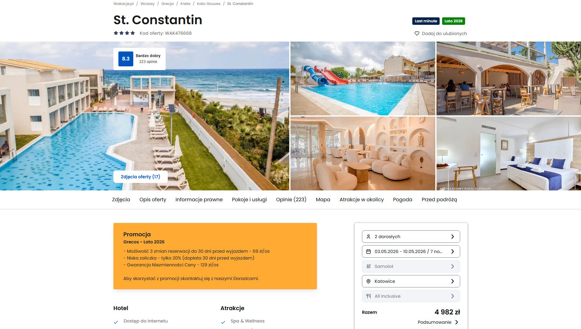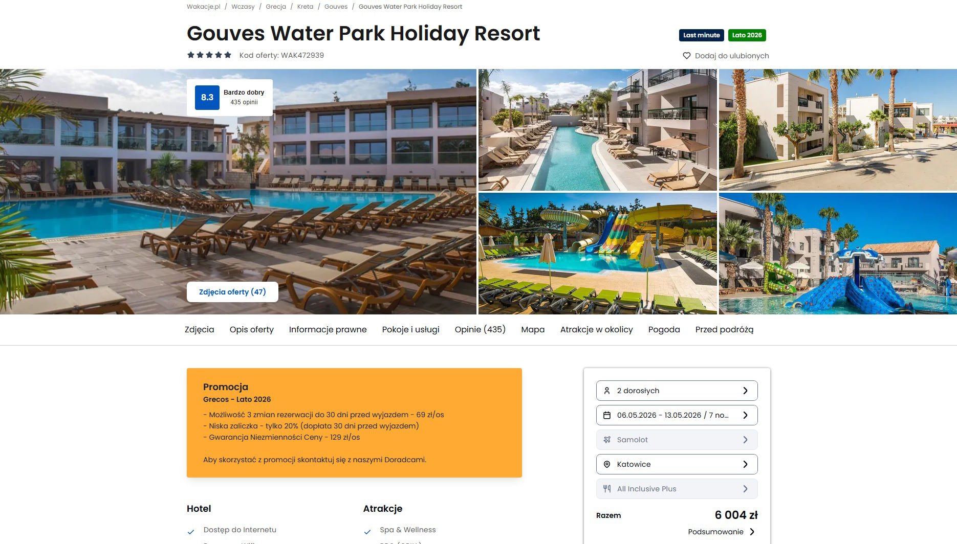 Współpracujemy z serwisem wakacje.pl i dzięki temu mogliśmy zaprezentować w/w ofertę. Treści pochodzą z serwisu wakacje.pl. Stanowią własność prawnie chronioną należącą do Wakacje.pl S.A. i/lub jej partnerów