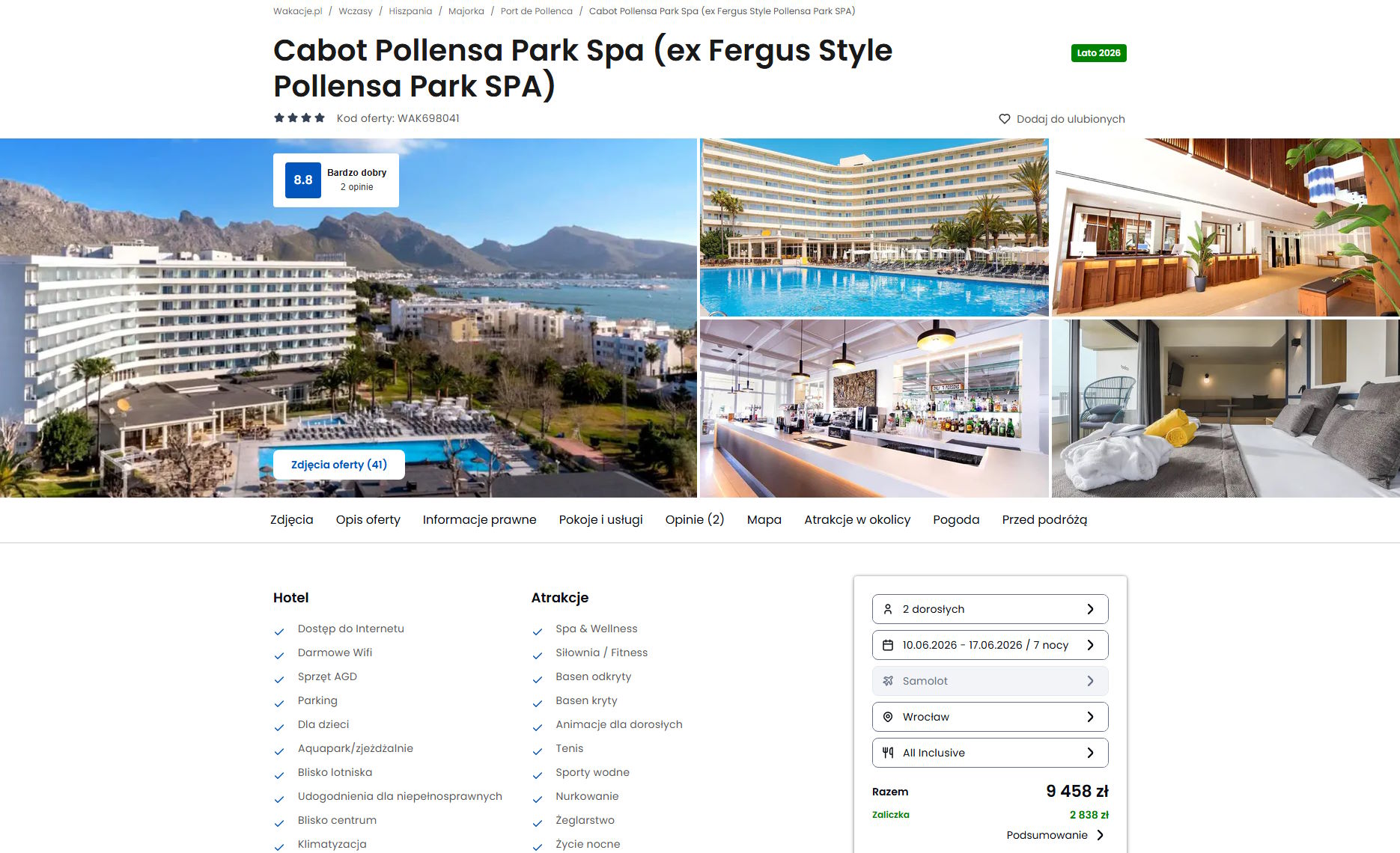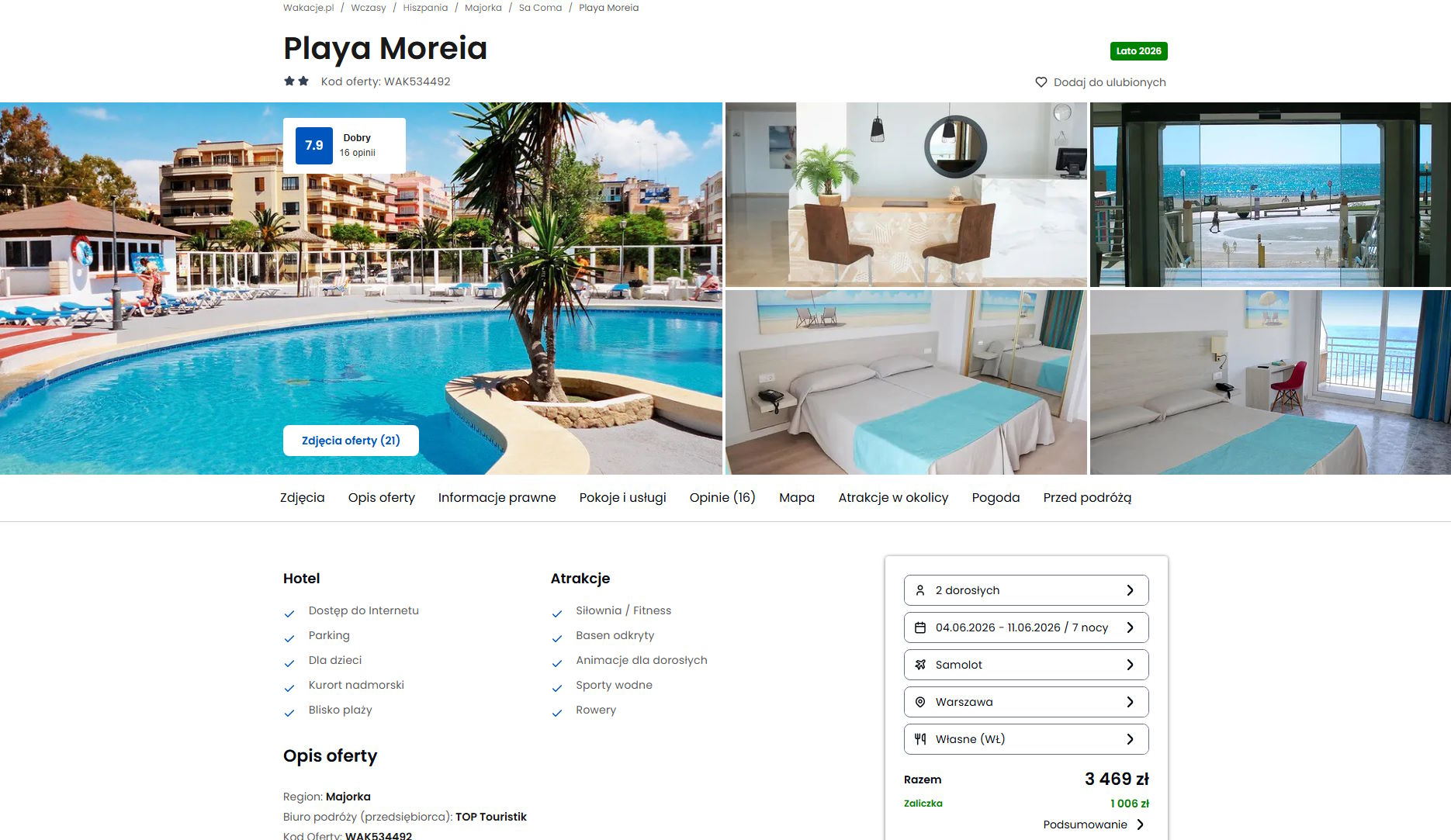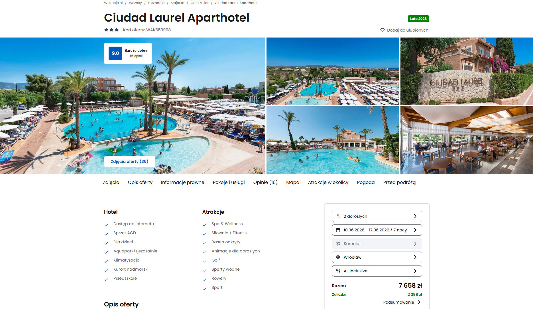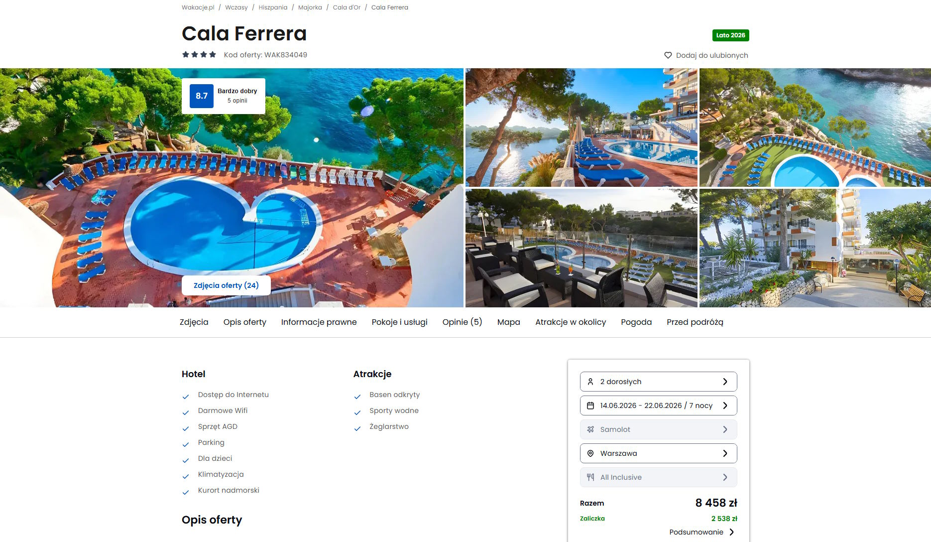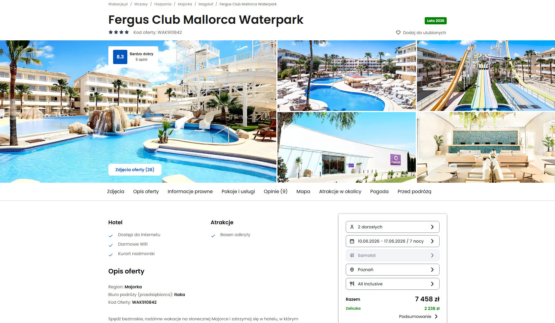 Współpracujemy z serwisem wakacje.pl i dzięki temu mogliśmy zaprezentować w/w ofertę. Treści pochodzą z serwisu wakacje.pl. Stanowią własność prawnie chronioną należącą do Wakacje.pl S.A. i/lub jej partnerów